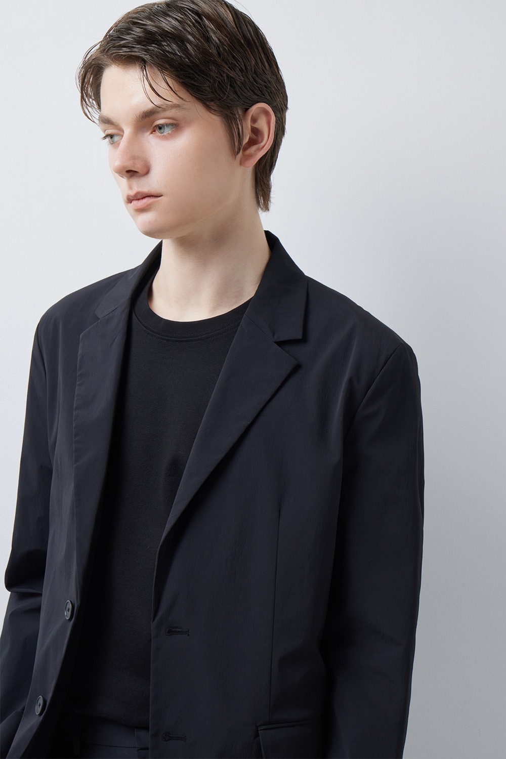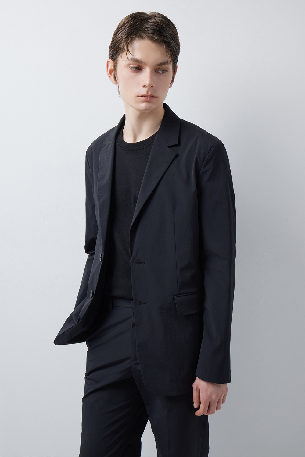 정돈된 실루엣과 유연한 소재감의 조화에 집중한 셋업 자켓입니다.