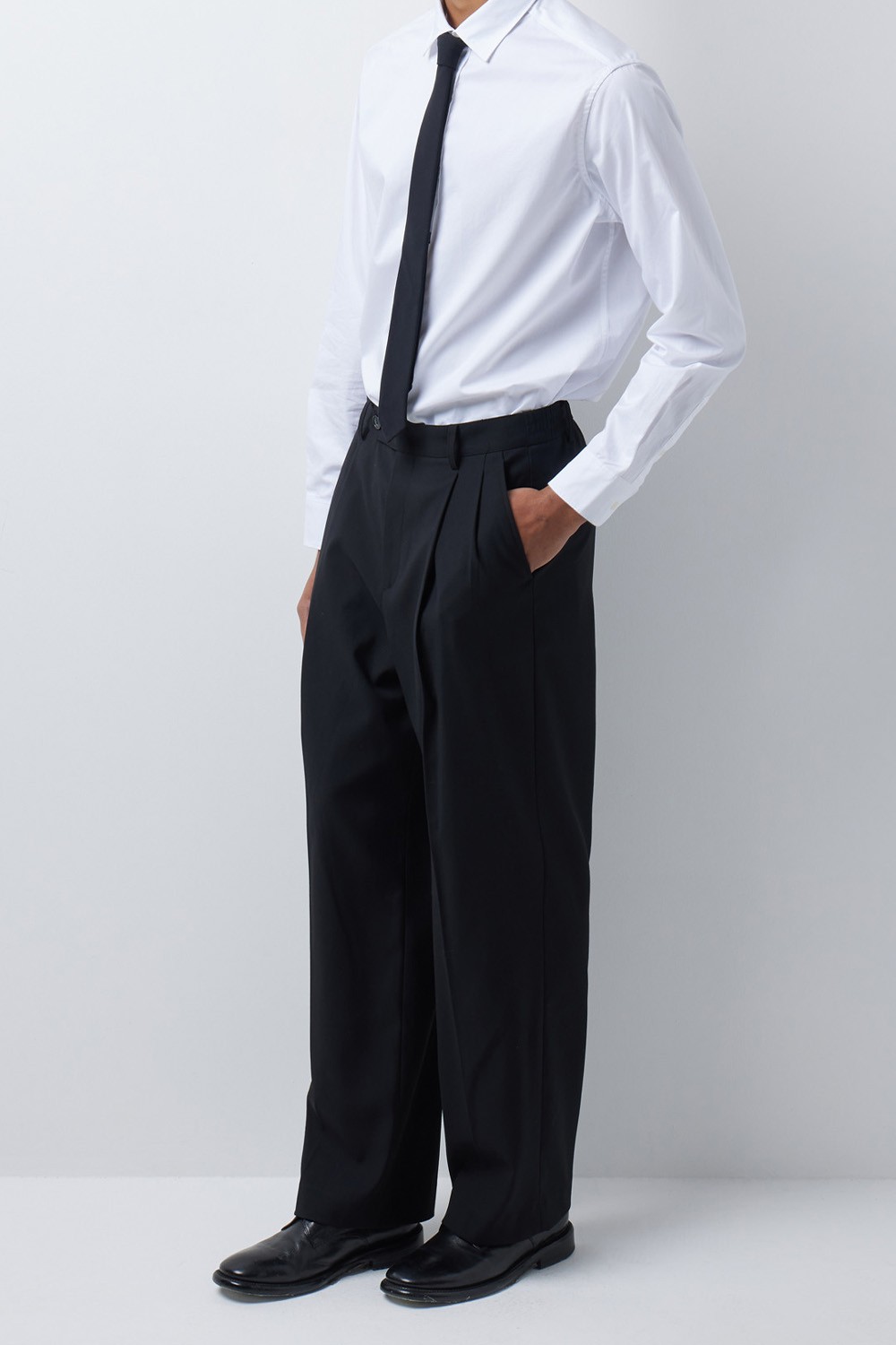 구두나 로퍼와 매치했을 때 가장 이상적인 밸런스를 보여주는 여유로운 기장감을 선사합니다.