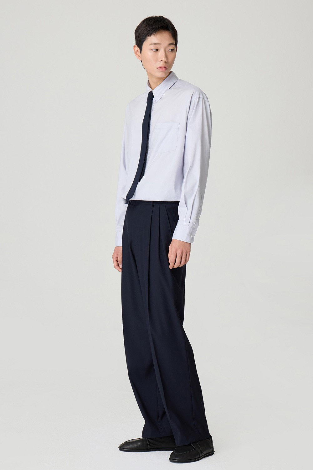 구두나 로퍼와 매치했을 때 가장 이상적인 밸런스를 보여주는 여유로운 기장감을 선사합니다.