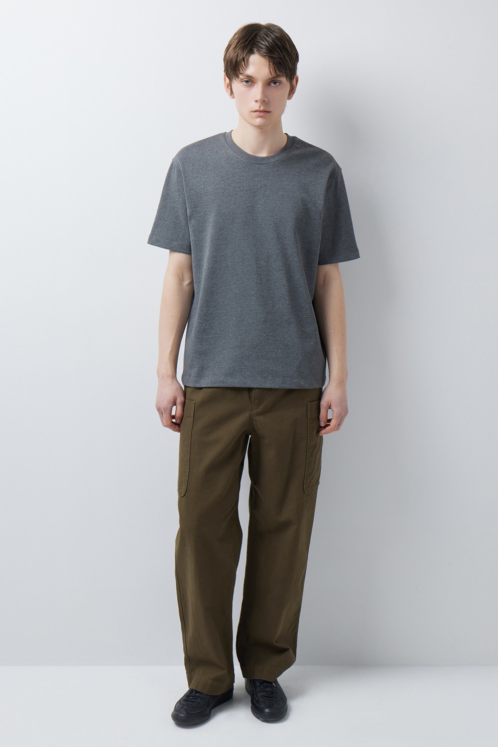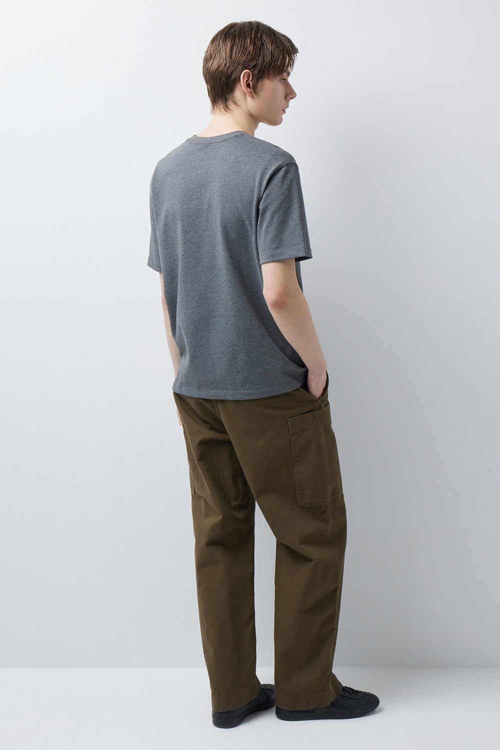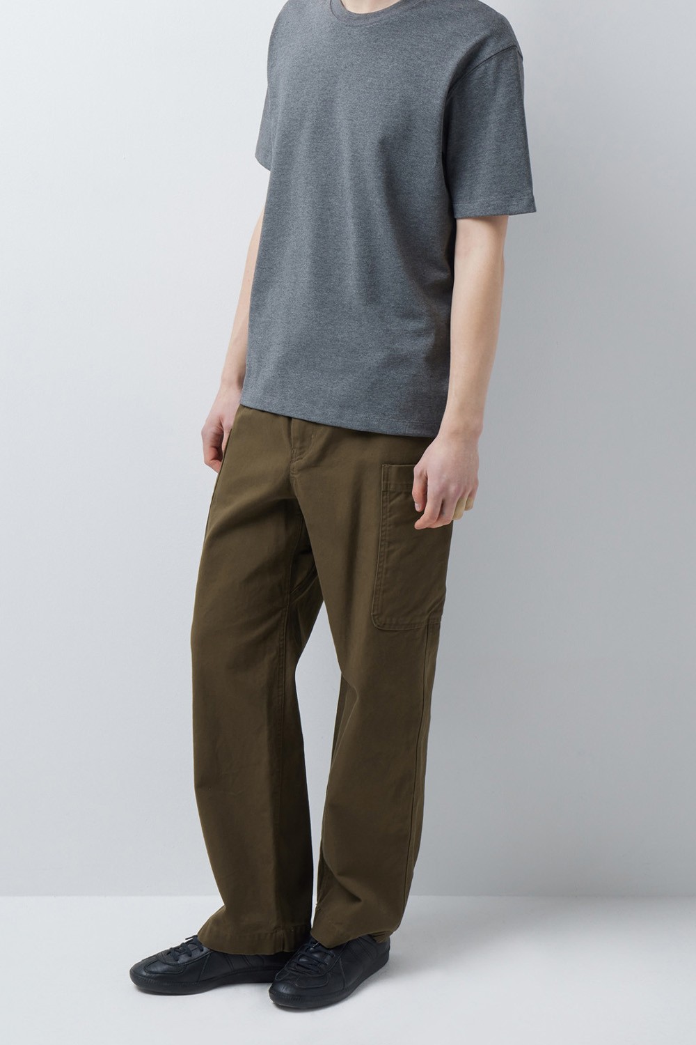 A : 세미 와이드 스트레이트 핏으로 설계되어 높은 스타일링 범용성을 갖춘 팬츠입니다. 블랙과 브라운의 에센셜한 두 가지 컬러로 제작되어 로퍼, 부츠부터 스니커즈까지 다양한 신발과 궁합이 좋은 아이템입니다. 두 개의 포켓이 부착되어 있어 여름철 반소매 티셔츠나 칼라가 부착된 셔츠와 미니멀하게 매치하여도 심심하지 않은 포인트가 될 수 있는 코튼 팬츠입니다.