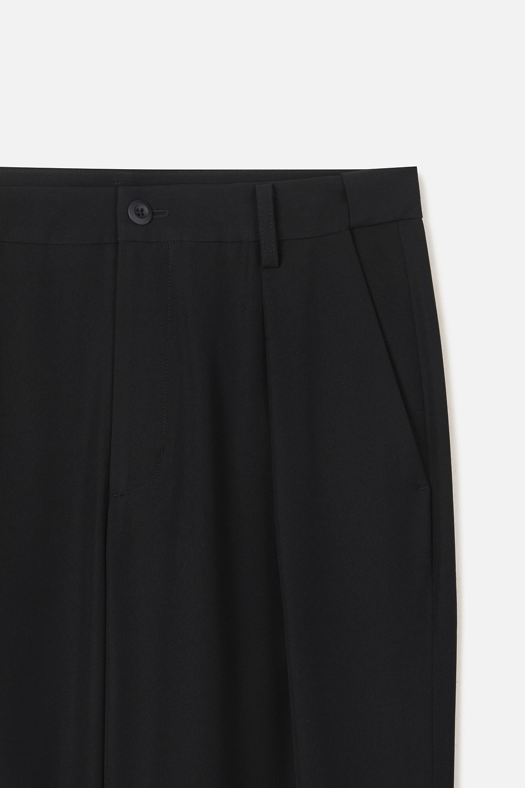 A : 밑단에 적용된 스쿠이(Blind Stitch) 봉제는 겉에서 봉제선이 보이지 않게 처리하여 미니멀하고 고급스러운 라인을 완성합니다. 또한, 원단 자체의 복원력이 좋아 장시간 앉아 있거나 보행 시에도 무릎 발샘을 최소화하며 탄탄한 실루엣을 유지합니다.