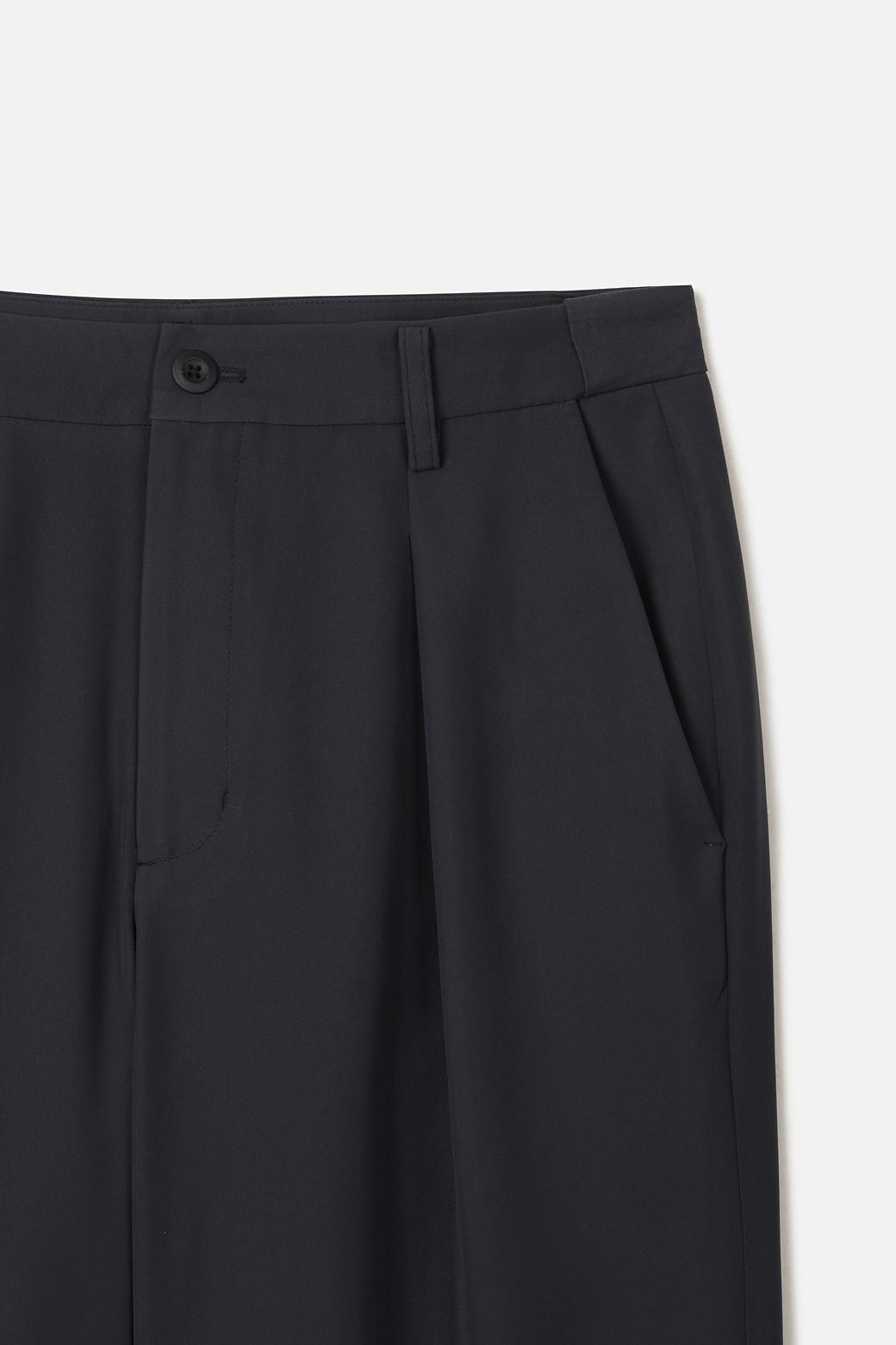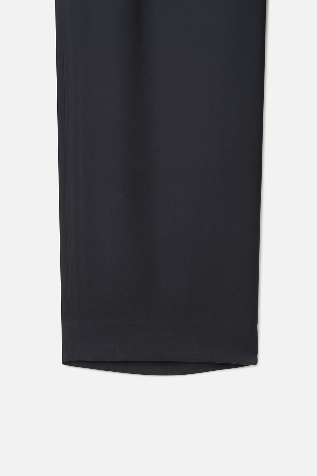A : 밑단에 적용된 스쿠이(Blind Stitch) 봉제는 겉에서 봉제선이 보이지 않게 처리하여 미니멀하고 고급스러운 라인을 완성합니다. 또한, 원단 자체의 복원력이 좋아 장시간 앉아 있거나 보행 시에도 무릎 발샘을 최소화하며 탄탄한 실루엣을 유지합니다.