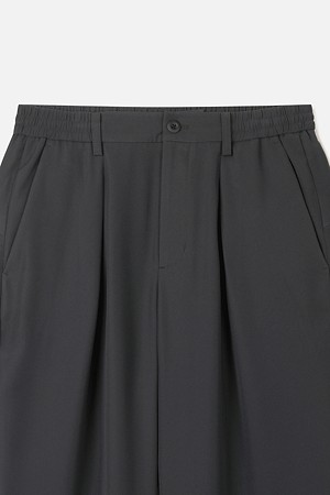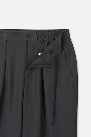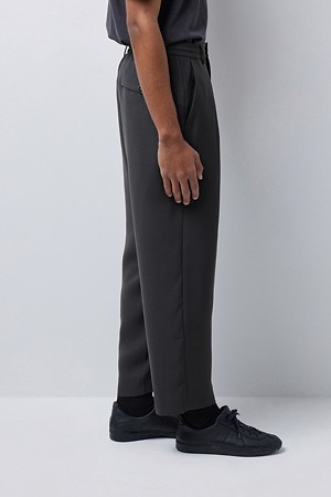 허리 라인에는 이밴드와 스트링을 함께 적용해 체형과 상황에 맞춰 안정적으로 조절하실 수 있도록 구성했습니다. 허리에는 턱 디테일을 더해 착용 시 여유감을 확보하면서도, 전체적인 실루엣은 깔끔하게 유지되도록 설계했습니다. 여유로운 허벅지라인에서 내려오는 테이퍼드 실루엣으로, 정제된 무드와 신발 위로 떨어지는 편안한 룩킹을 연출하실 수 있도록 디자인했습니다.