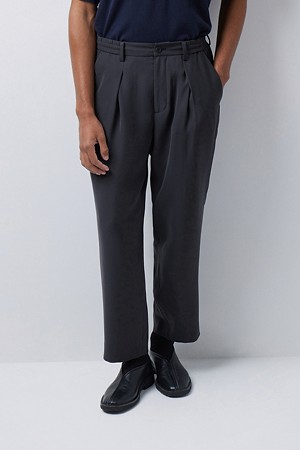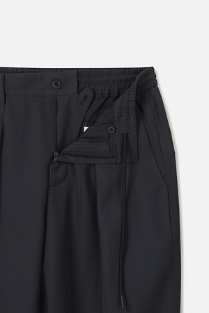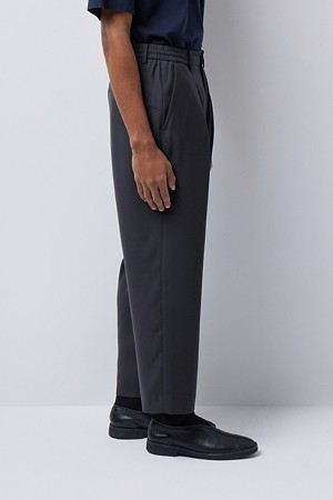 허리 라인에는 이밴드와 스트링을 함께 적용해 체형과 상황에 맞춰 안정적으로 조절하실 수 있도록 구성했습니다. 허리에는 턱 디테일을 더해 착용 시 여유감을 확보하면서도, 전체적인 실루엣은 깔끔하게 유지되도록 설계했습니다. 여유로운 허벅지라인에서 내려오는 테이퍼드 실루엣으로, 정제된 무드와 신발 위로 떨어지는 편안한 룩킹을 연출하실 수 있도록 디자인했습니다.