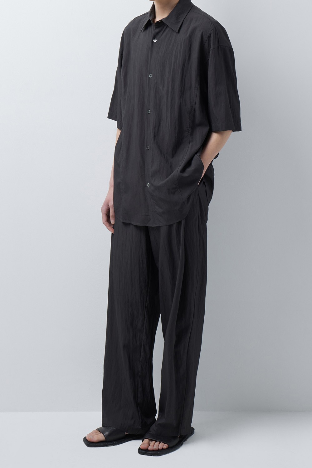 동일 소재 셔츠와의 균형을 고려해 설계한 팬츠로, 일상과 업무 환경 모두에서 안정적인 착용감을 제공하도록 제작했습니다.