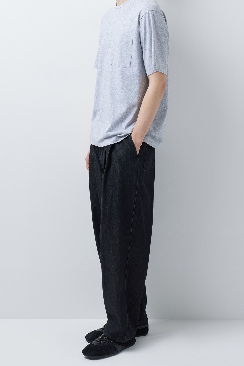 사이드 어드저스터와 크로치 거셋, 더블 플리츠 디테일은 와이드한 실루엣을 완성하는 심미적 요소인 동시에, 코튼 100% 데님에서 느낄 수 있는 최상의 편안함을 제공합니다.