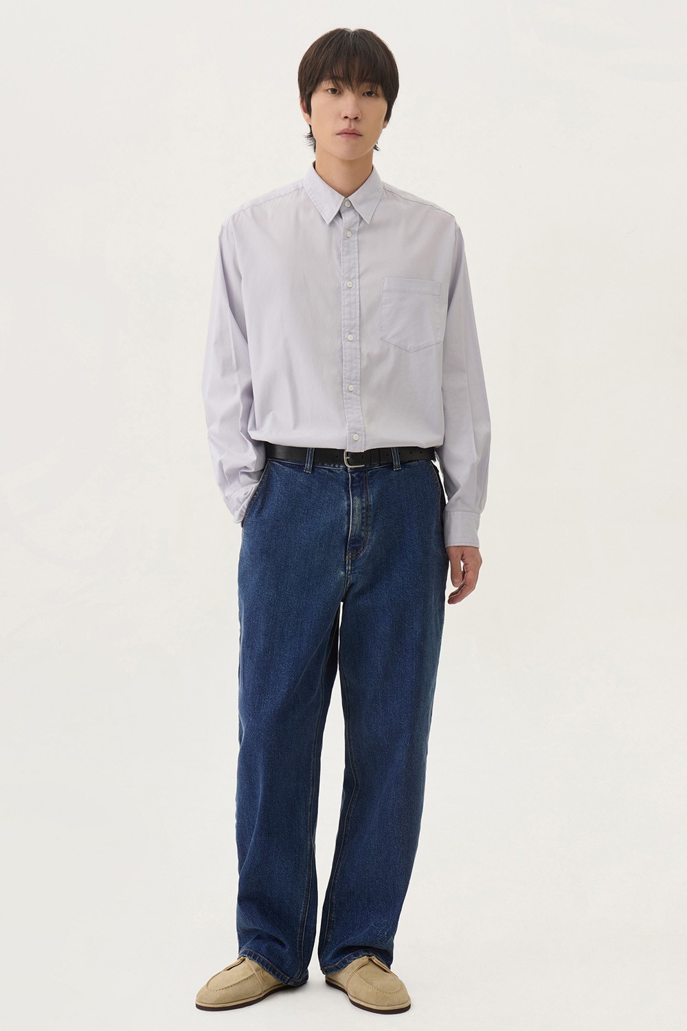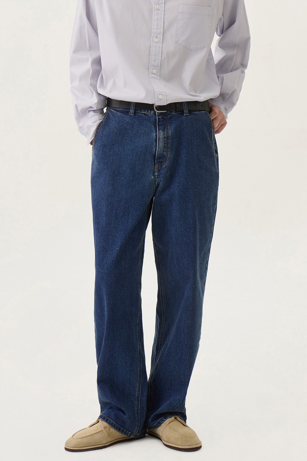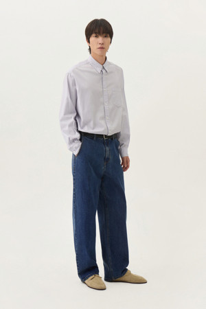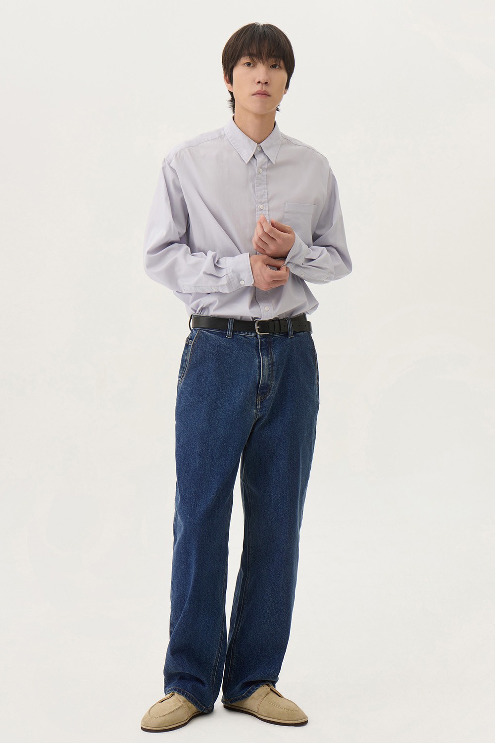 A : 데님 스타일링이 익숙하지 않은 분들이나 베이직한 티셔츠 등 무심하고 미니멀한 스타일링을 즐겨하시는 분들도 전체적인 착장에서의 완성도를 높여줄 수 있는 감각적인 실루엣입니다. 여유 있으면서도 과하지 않은 와이드한 너비의 밑단은 실제로 로퍼, 스니커즈, 그리고 부츠 등 다양한 신발을 직접 착용해보며 신발 스타일링에서 최적의 범용성을 가질 수 있도록 설계하였습니다.