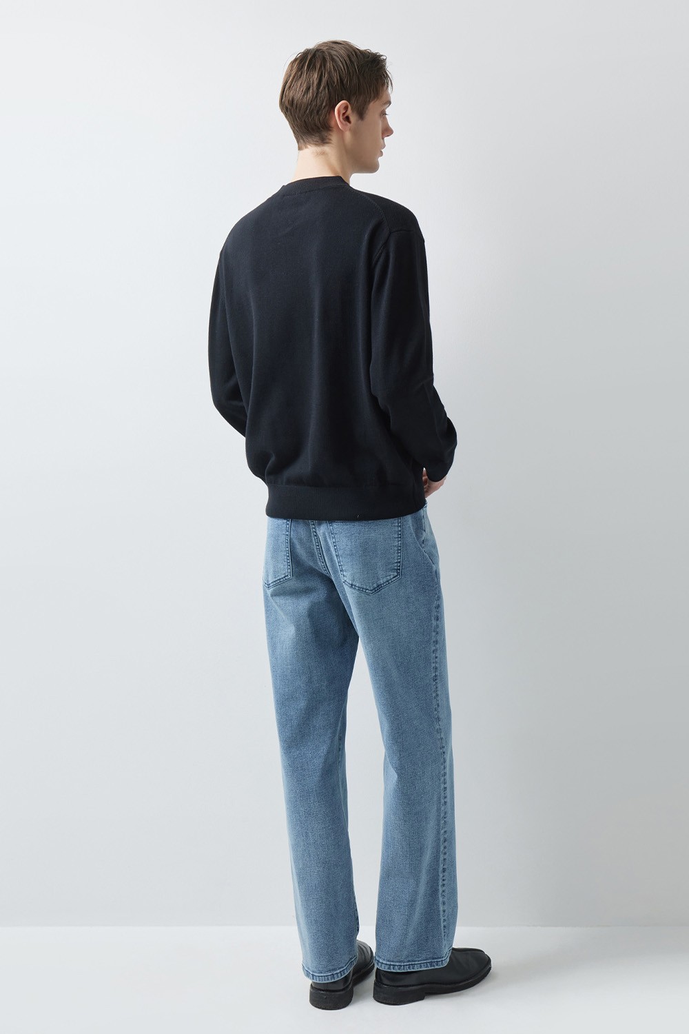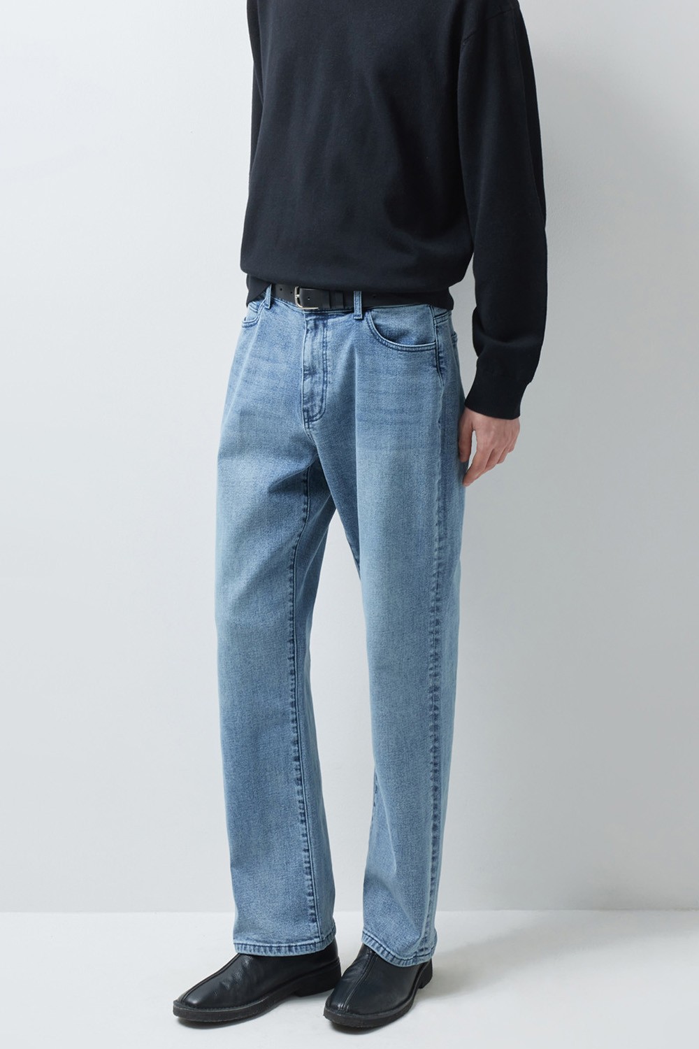 스트레치 소재를 혼용하여 데님 고유의 질감은 유지하면서도 움직임의 제약을 최소화했습니다. 밑단은 신발의 높이에 관계없이 자연스럽게 안착되도록 설계되어 전체적인 룩의 프로포션을 안정적으로 잡아줍니다.