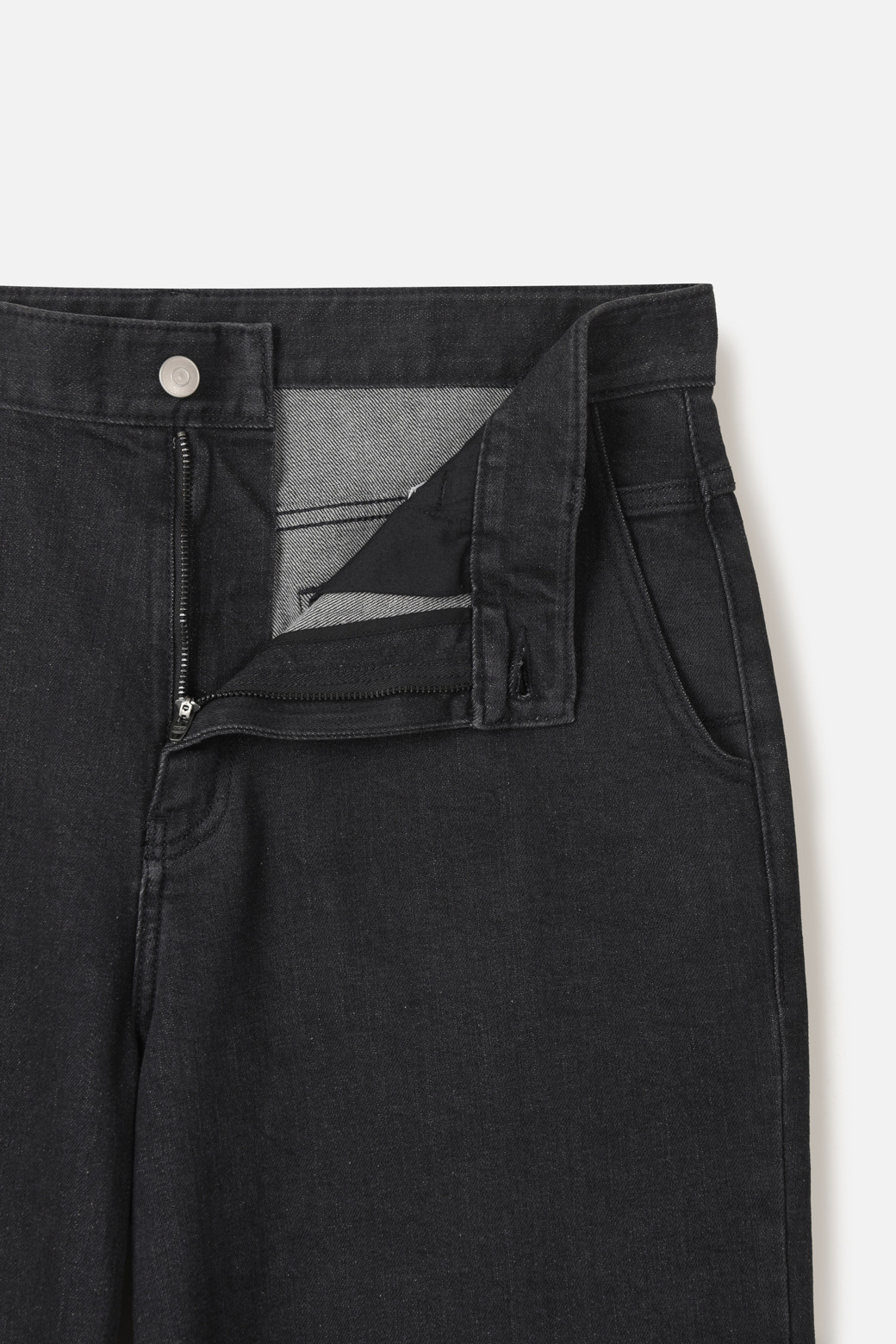 포켓 디자인은 치노 팬츠의 실용성에서 아이디어를 얻었습니다. J자 형으로 설계된 사이드 포켓은 손을 넣을 때 보다 자연스럽고 편안한 각도를 선사하며 데님에서 흔치 않은 담백한 외관을 완성합니다.