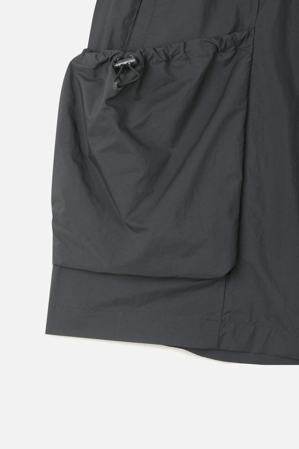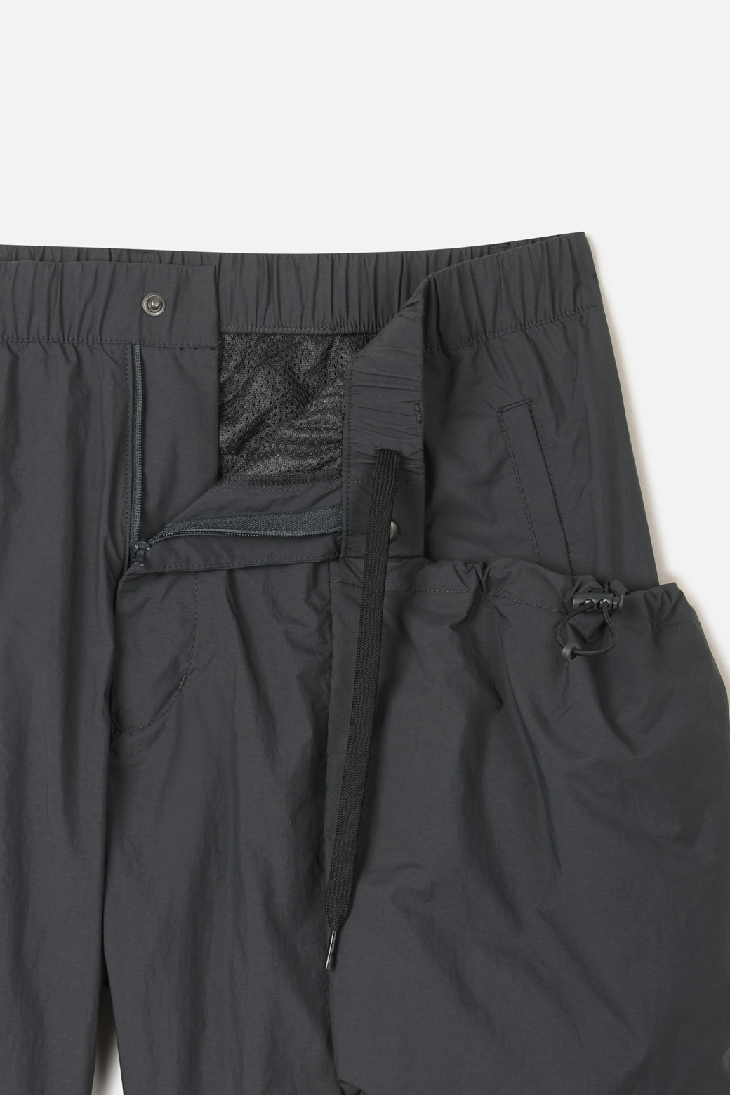 한여름까지 활용할 수 있는 썸머형 쇼츠로 제작하면서도, 수납성이 떨어지는 여름 시즌의 불편함을 해결함에 집중했습니다. 허리에는 이밴드와 스트링이 내장되어 사이즈에 맞게 조절이 가능하며, 벨트고리가 함께 적용되어 스트랩이나 장비 장착 시 유연하게 대응할 수 있습니다. 총 7개의 포켓은 수납 목적과 활용 빈도에 따라 위치와 구조가 달리 배치되었으며, 아웃포켓에는 이밴드를 삽입해 입구가 자동으로 조여지는 구조로 설계되었습니다.