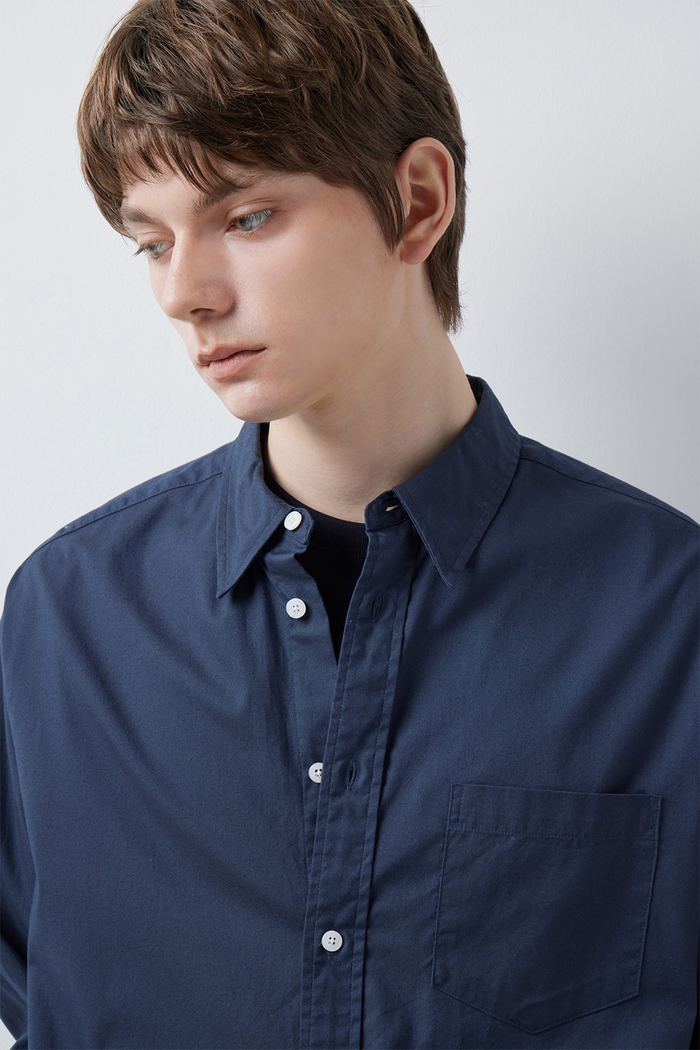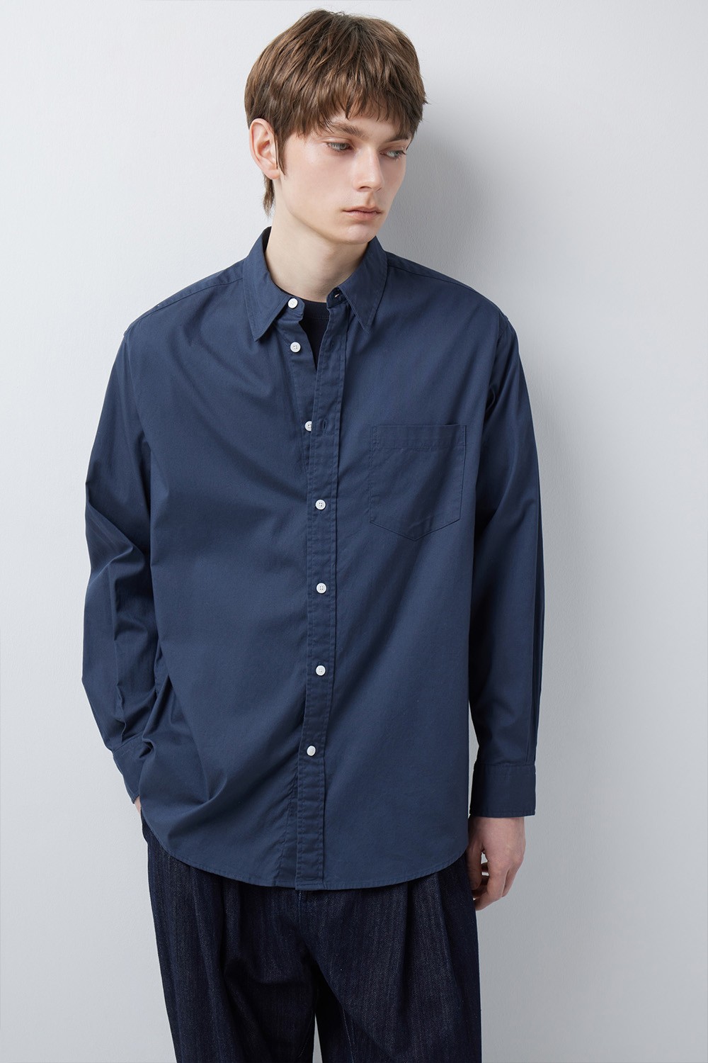 단정한 아웃핏의 히든 버튼 칼라