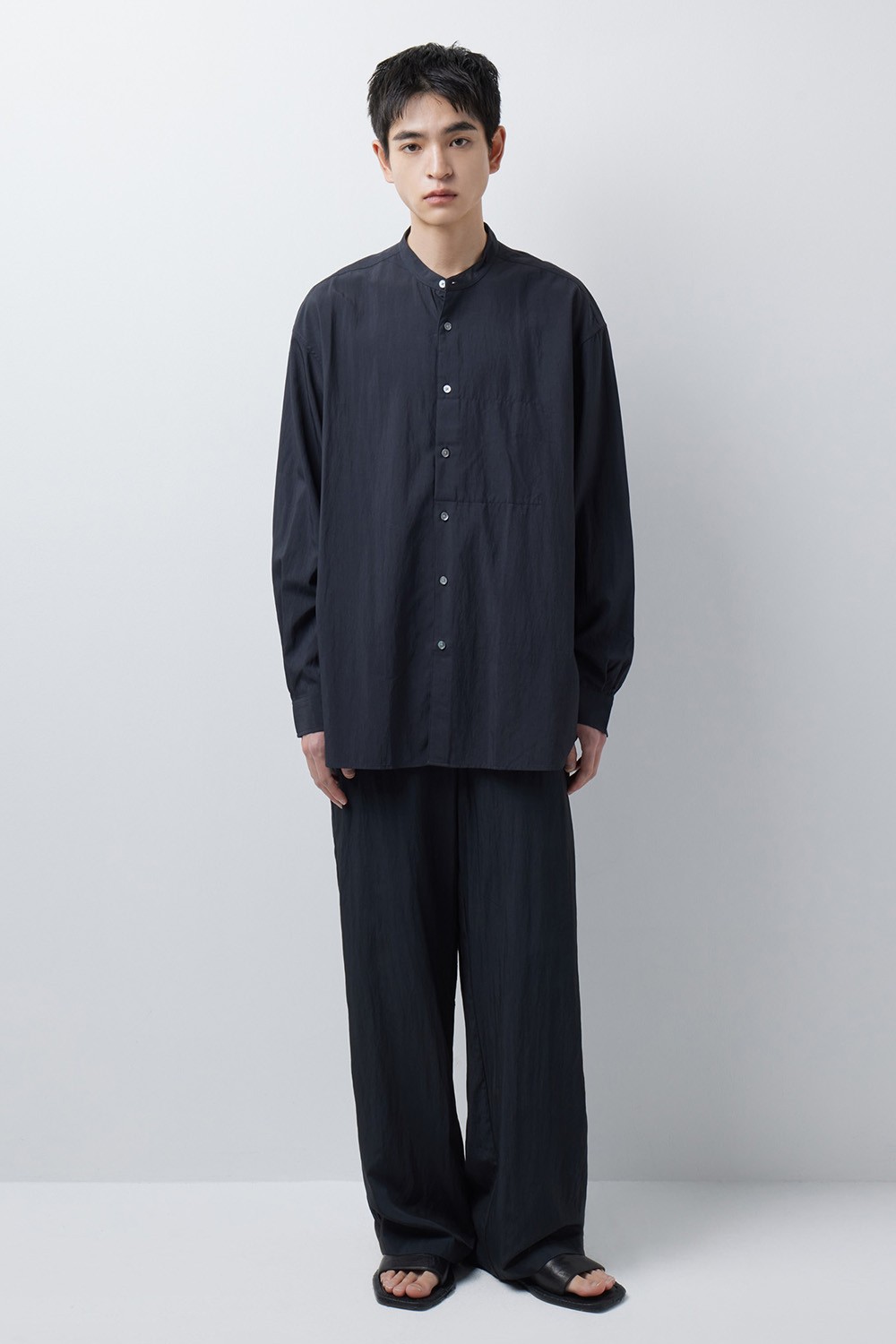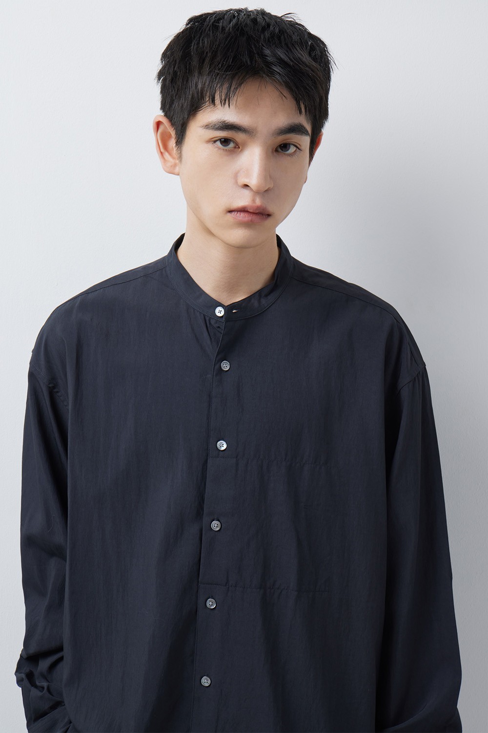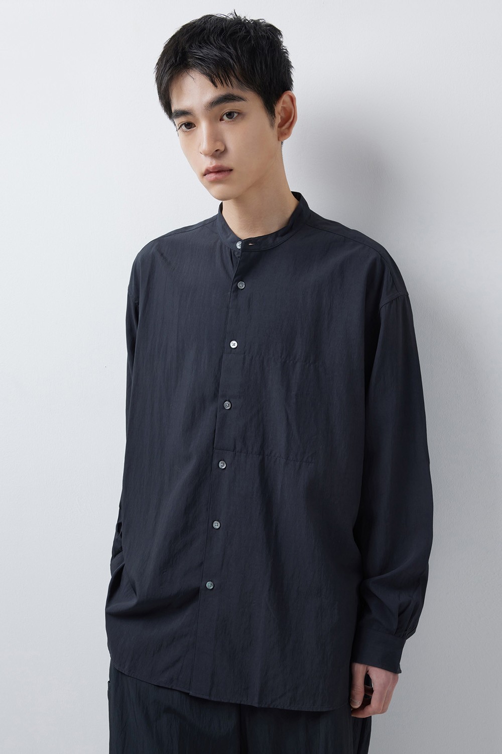 자연스러운 실루엣의 스탠드 칼라 셔츠