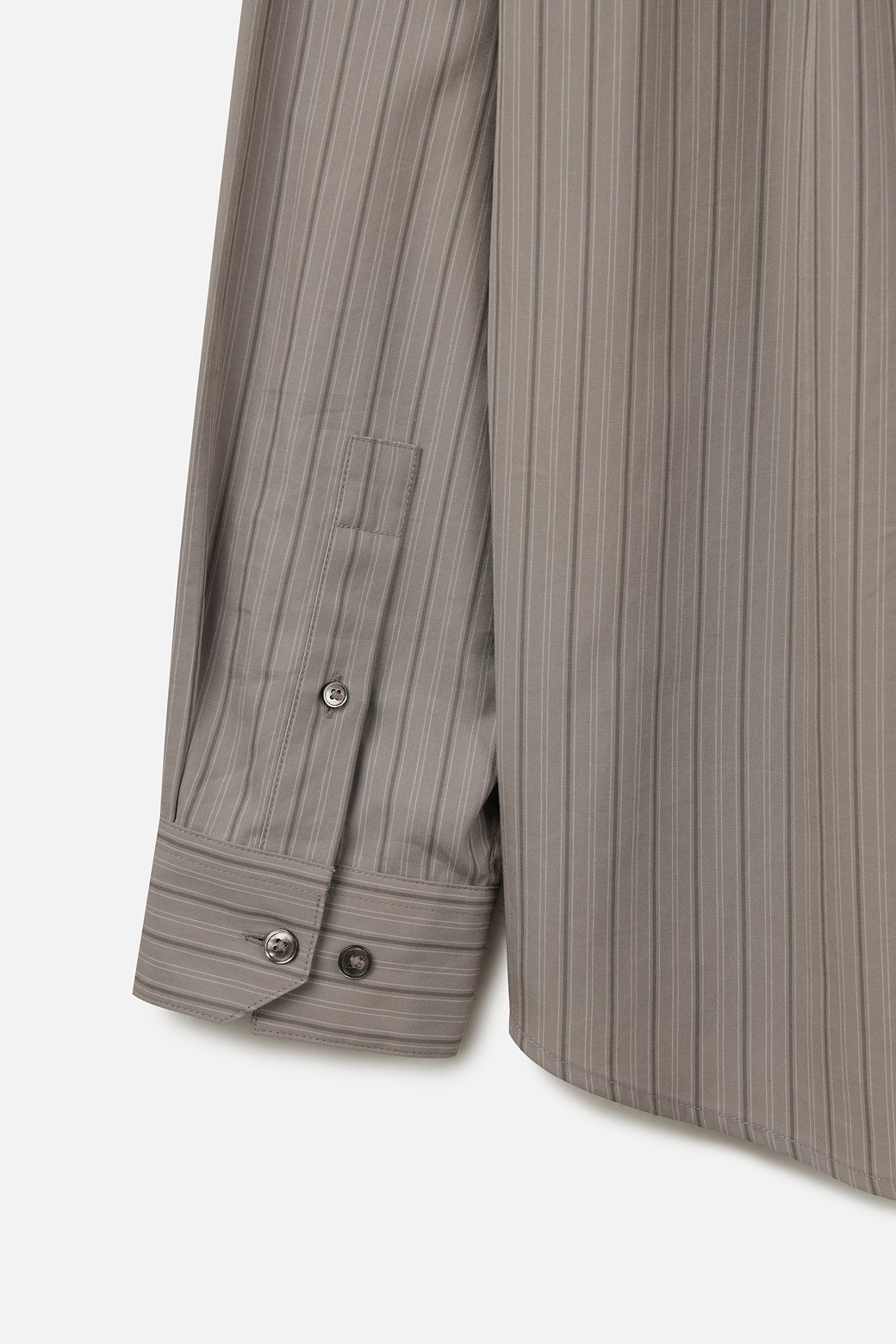 코튼 100% 원단을 사용했습니다. 60수 조직으로 가볍고 부드러운 터치감을 제공하며, 은은하게 하늘거리는 스트라이프 패턴이 특징입니다. 통기성이 우수해 더운 계절에도 쾌적한 착용감을 유지하실 수 있습니다.