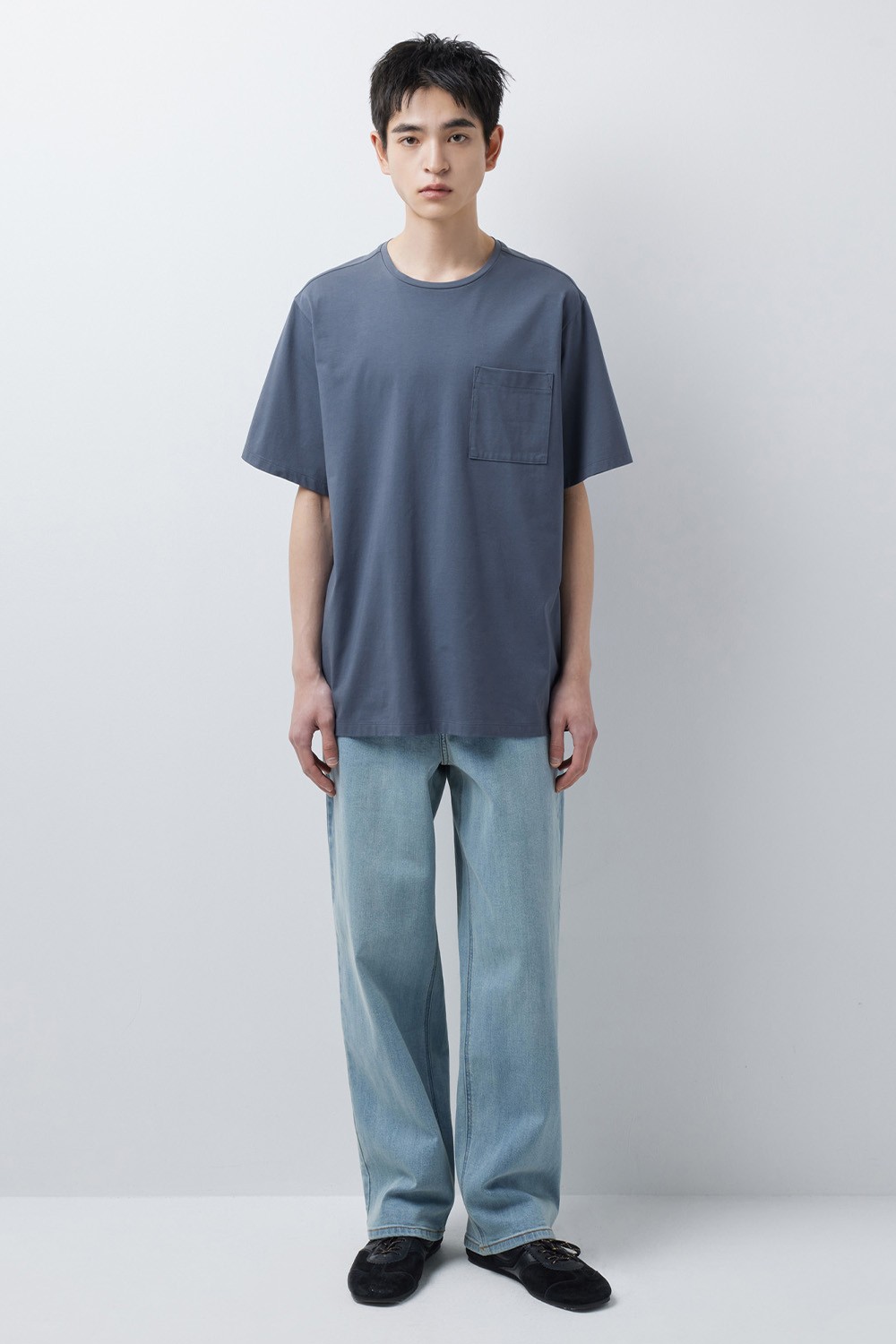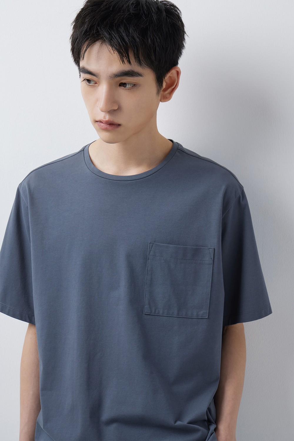 자연스럽게 떨어지는 세미오버핏 실루엣으로 설계되어 단정한 분위기를 연출합니다. 가슴 부분의 간결한 원 포켓 디테일이 시각적인 밸런스를 잡아주며, 단품 활용은 물론 아우터 안의 이너로서도 정돈된 아웃핏을 완성해주는 베이직 아이템입니다.