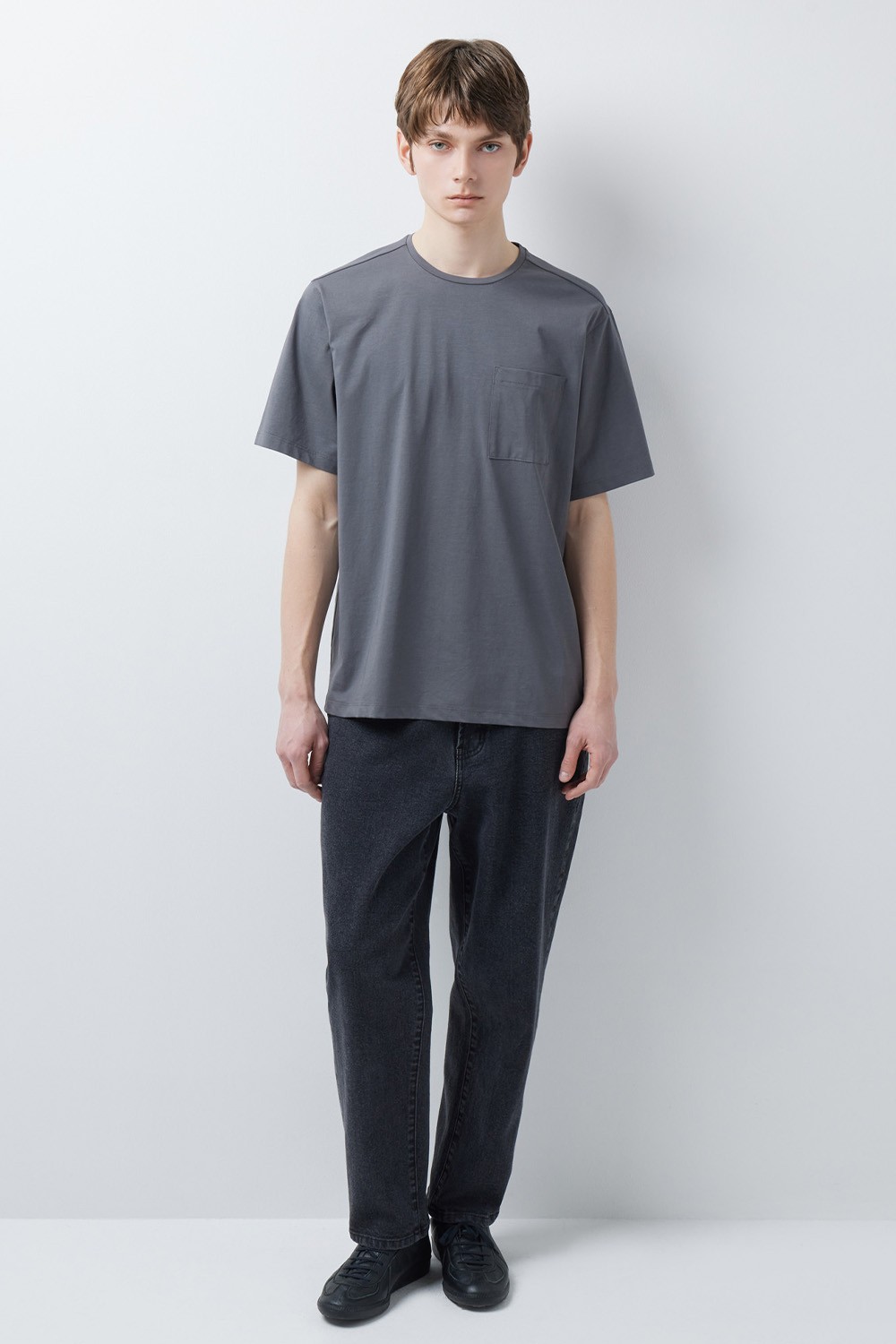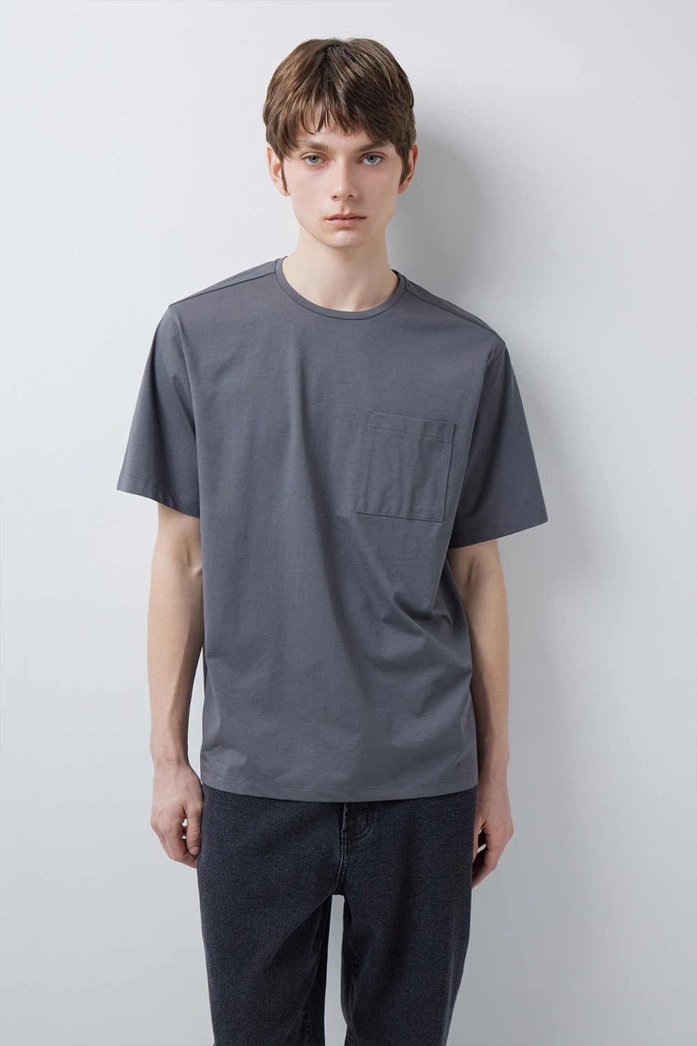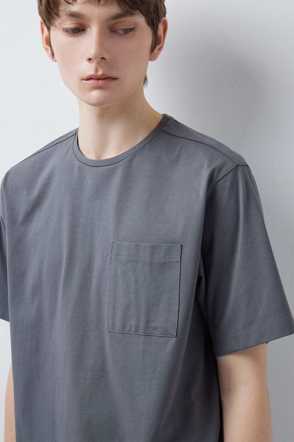 자연스럽게 떨어지는 세미오버핏 실루엣으로 설계되어 단정한 분위기를 연출합니다. 가슴 부분의 간결한 원 포켓 디테일이 시각적인 밸런스를 잡아주며, 단품 활용은 물론 아우터 안의 이너로서도 정돈된 아웃핏을 완성해주는 베이직 아이템입니다.