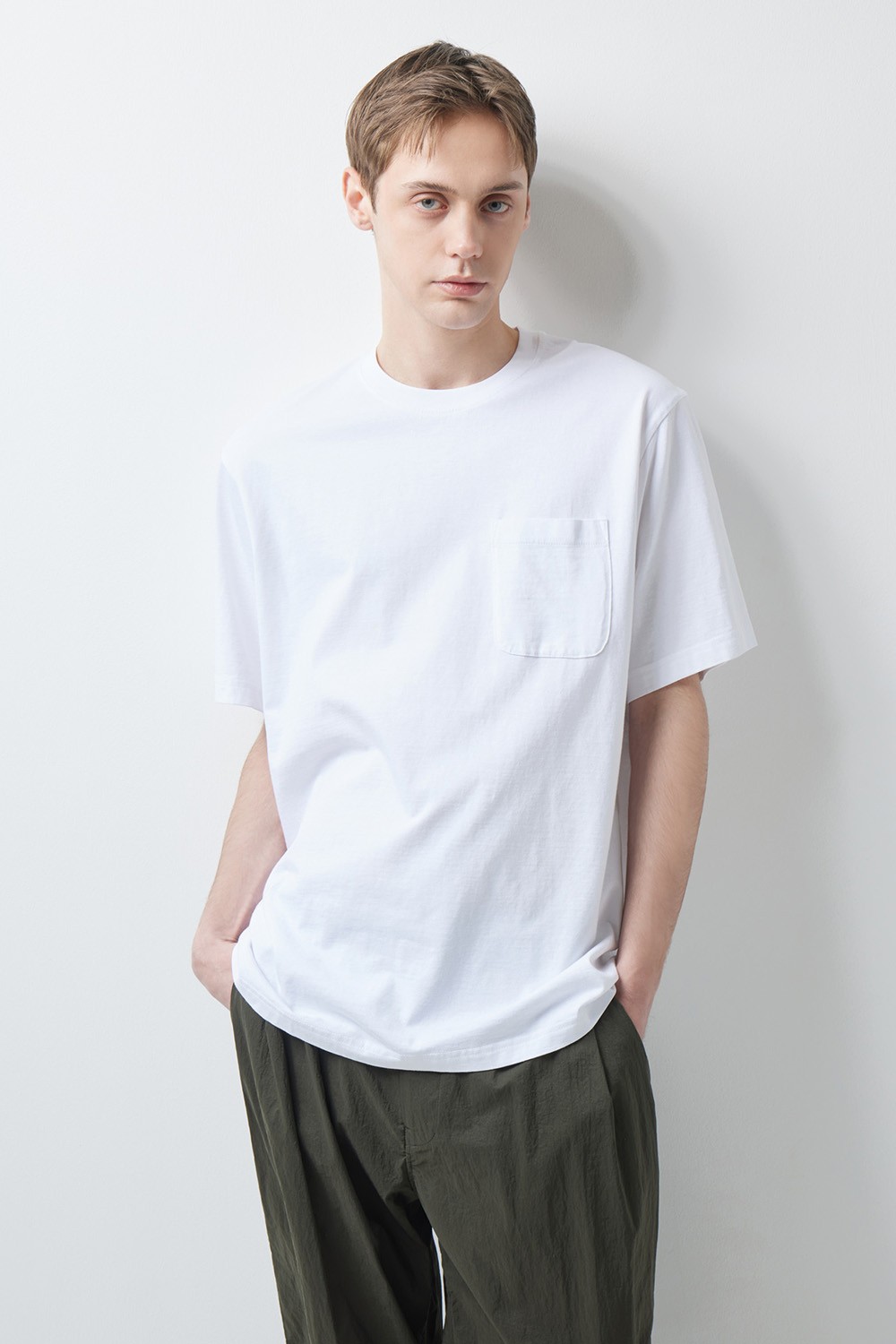 에센셜한 라운드넥과 여유로운 실루엣을 적용하여 다양한 하의와 조화롭게 어우러집니다. 내추럴한 원단과 조화를 이루는 체스트 포켓 디테일로 실용성을 높였으며, 시간이 흐를수록 더해지는 빈티지한 멋이 매력적인 아이템입니다.
