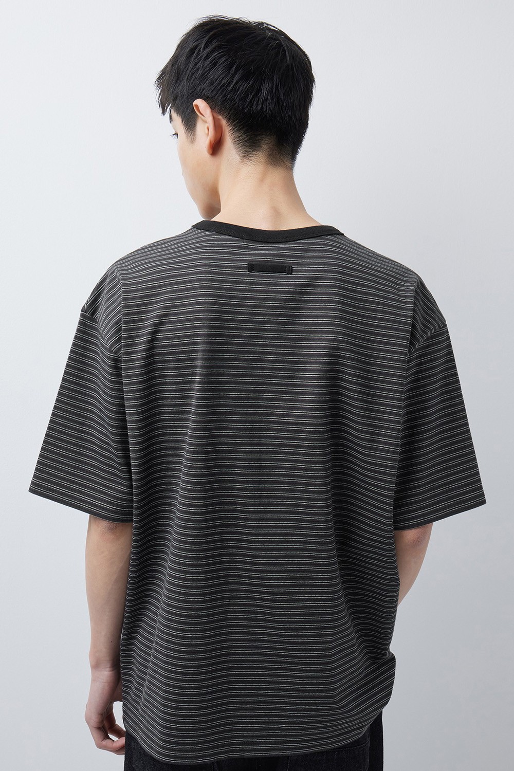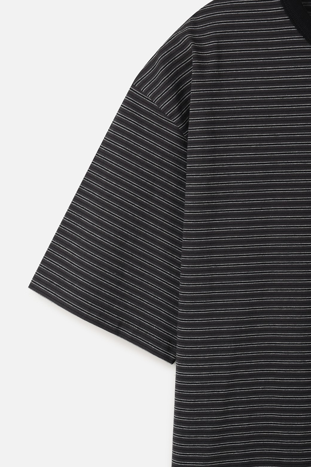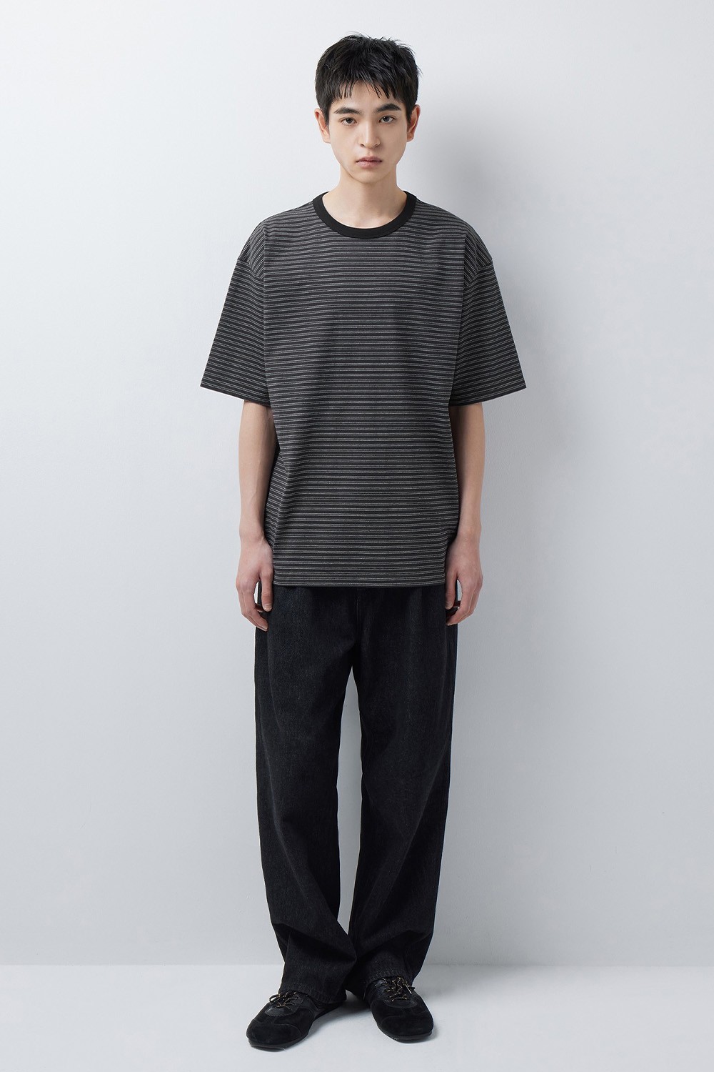 멀티 스트라이프 패턴을 중심으로 단정하면서도 캐주얼한 분위기를 동시에 느끼실 수 있습니다. 기본 티셔츠 실루엣을 기반으로 하되 패턴이 자연스럽게 드러날 수 있도록 전체적인 비율을 조율했으며, 다양한 스타일링에도 안정적으로 어우러지도록 구성했습니다.