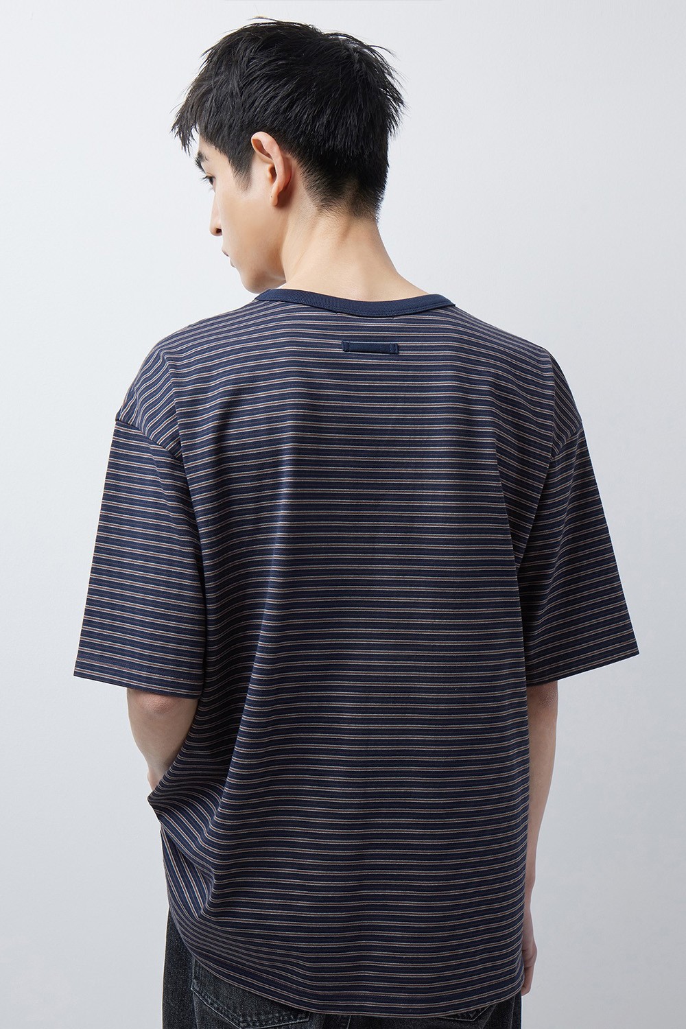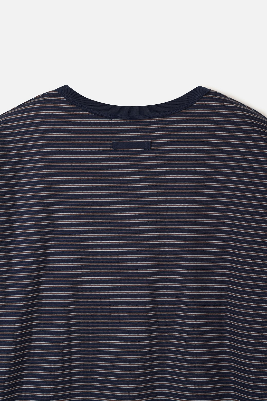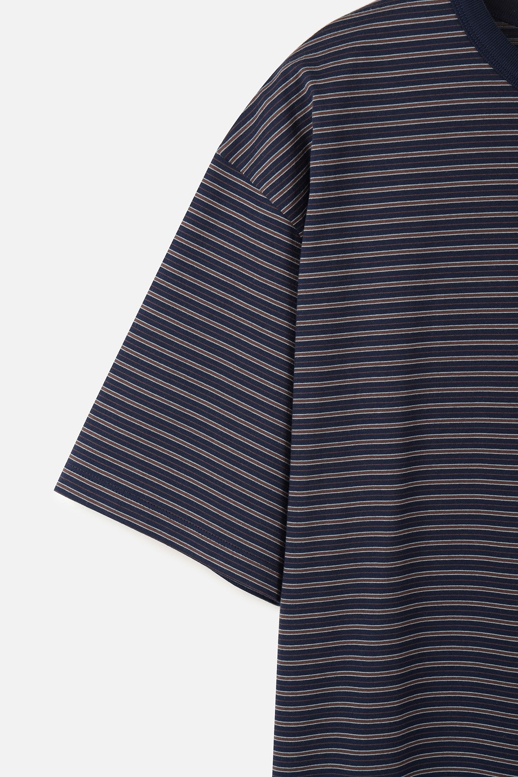 멀티 스트라이프 패턴을 중심으로 단정하면서도 캐주얼한 분위기를 동시에 느끼실 수 있습니다. 기본 티셔츠 실루엣을 기반으로 하되 패턴이 자연스럽게 드러날 수 있도록 전체적인 비율을 조율했으며, 다양한 스타일링에도 안정적으로 어우러지도록 구성했습니다.