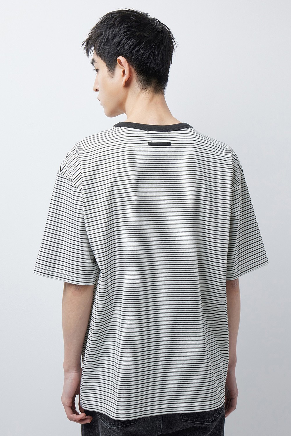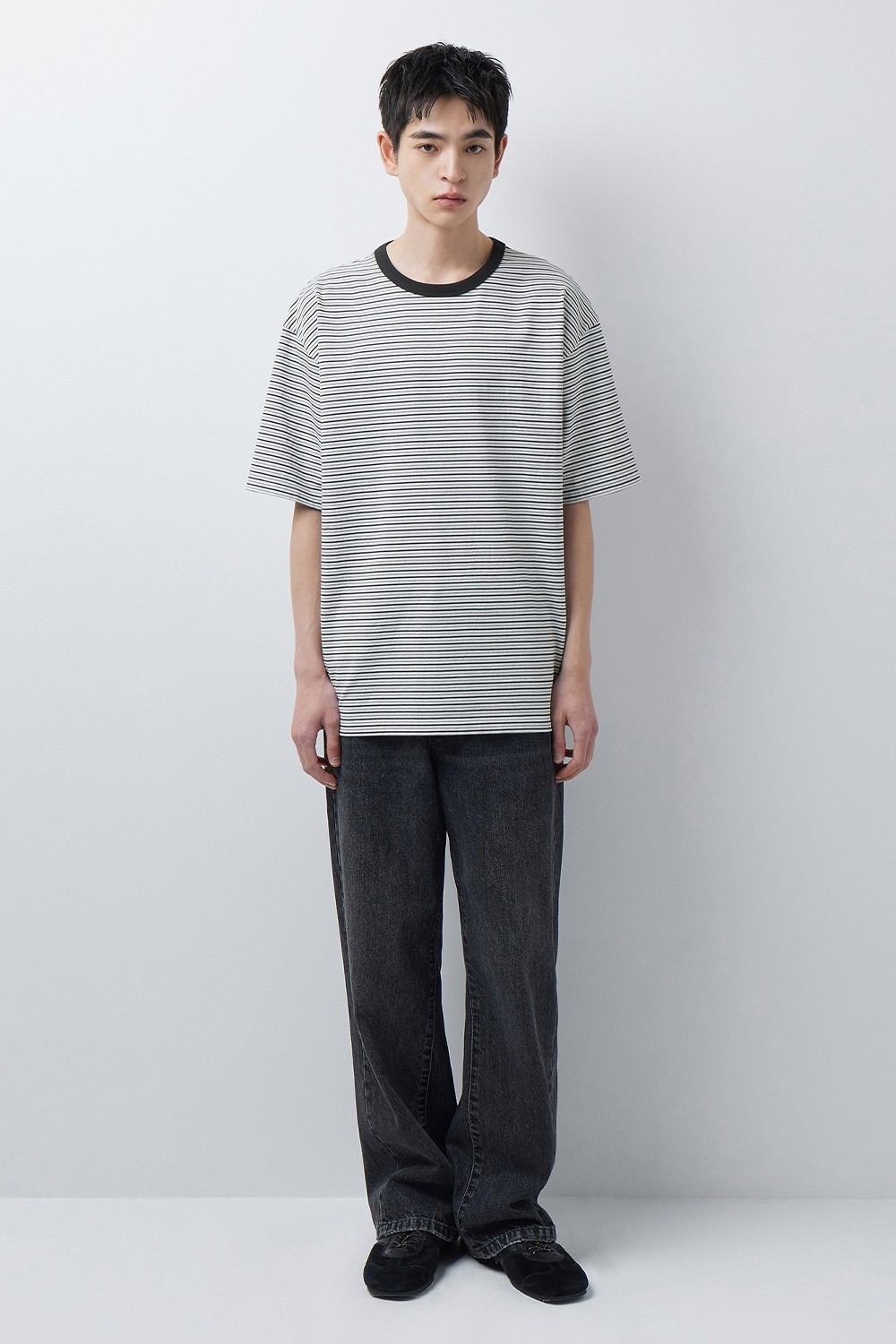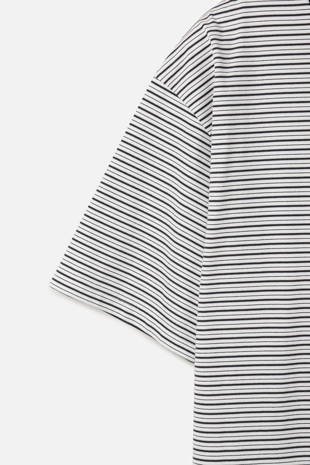 멀티 스트라이프 패턴을 중심으로 단정하면서도 캐주얼한 분위기를 동시에 느끼실 수 있습니다. 기본 티셔츠 실루엣을 기반으로 하되 패턴이 자연스럽게 드러날 수 있도록 전체적인 비율을 조율했으며, 다양한 스타일링에도 안정적으로 어우러지도록 구성했습니다.