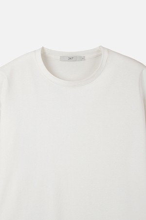 A : 고기능성 냉감 원사인 아스킨을 면과 혼방하여, 일반 면 티셔츠보다 훨씬 쾌적하고 시원한 감촉을 선사합니다. 땀을 빠르게 흡수하고 건조하며 비침 방지 기능까지 갖춰 여름철에도 단정하고 시원하게 착용하실 수 있습니다.