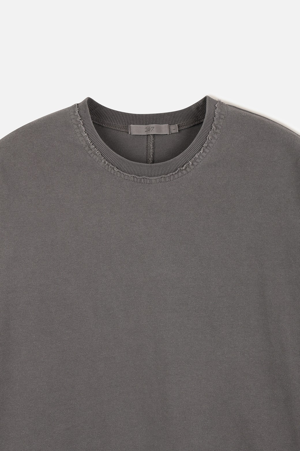여유 있는 오버사이즈 루즈핏 실루엣을 기반으로 편안한 착용감과 자연스러운 드레이프를 형성합니다. 네크라인과 소매, 밑단에는 로우컷 디테일을 적용해 과하지 않으면서도 빈티지하고 감각적인 인상을 더했습니다.