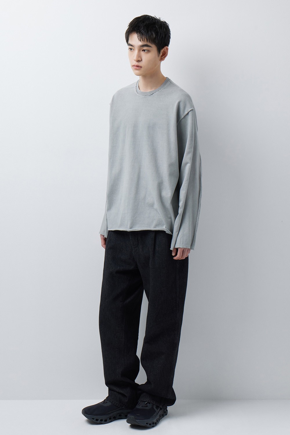 10수 싱글 코튼 원단을 사용해 탄탄한 조직감과 안정적인 두께감을 느끼실 수 있도록 제작했습니다. 중량감이 느껴지는 원단의 두께감을 기반으로 형태가 무너지지 않는 묵직한 실루엣을 유지합니다. 피그먼트 다잉 염색 공정을 통해 표면에 자연스러운 컬러의 깊이와 미묘한 워싱감을 더했으며, 착용과 세탁을 반복해도 변형이 없는 관리의 편안함을 느끼실 수 있도록 제작했습니다.