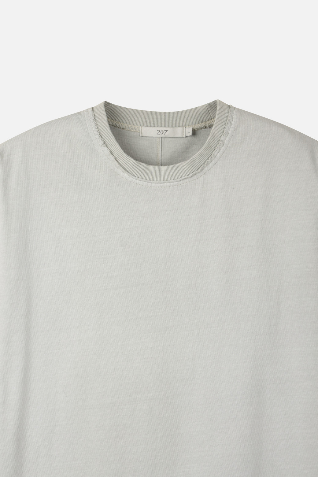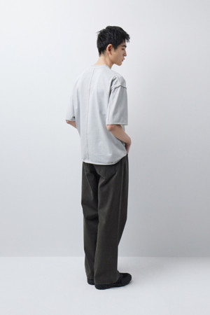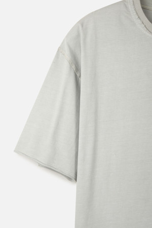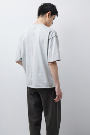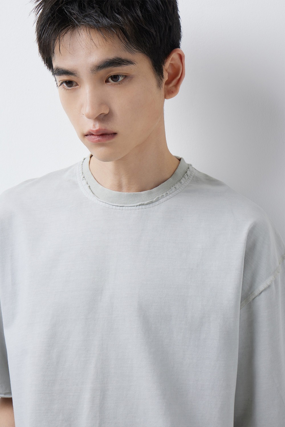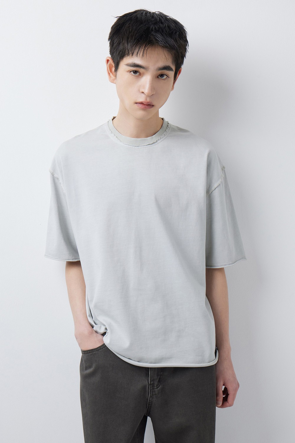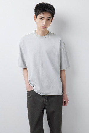 자연스러운 워싱 컬러와 로우 엣지 디테일을 중심으로, 편안하면서도 감각적인 인상의 실루엣을 완성한 반소매 티셔츠입니다.