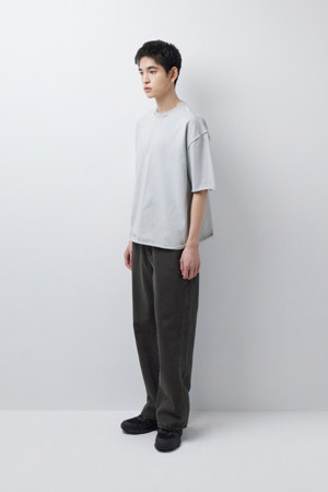 코튼 100% 원단을 사용해 제작했습니다. 30수 2합 싱글 원사의 중량감이 느껴지는 원단으로, 안정적인 밀도와 편안한 착용감을 동시에 느끼실 수 있습니다. 피그먼트 다잉 염색 공정을 적용해 자연스럽게 바랜 듯한 컬러감을 구현했으며, 착용과 세탁을 반복할수록 더욱 자연스러운 분위기를 느끼실 수 있도록 제작했습니다.