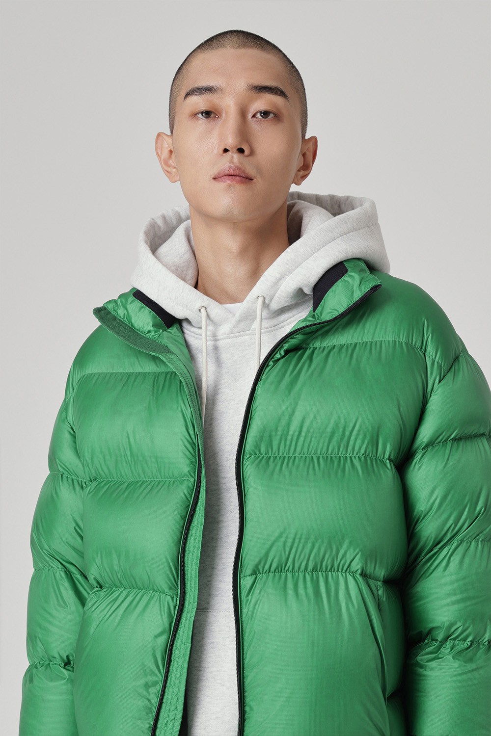 기본적으로 후드를 제외한 푸퍼 디자인으로 제작했습니다. 기장이 짧은 푸퍼의 형태에서는 후드가 없는 형태가 가장 이상적인 형태라고 생각했습니다. 다만 후드를 내부에 내장하여 유사시에는 간편하게 꺼내어 사용하실 수 있도록 제작했습니다. 비나 강한 바람 등 날씨 변화에 따라 실용적으로 후드를 활용하실 수 있습니다.