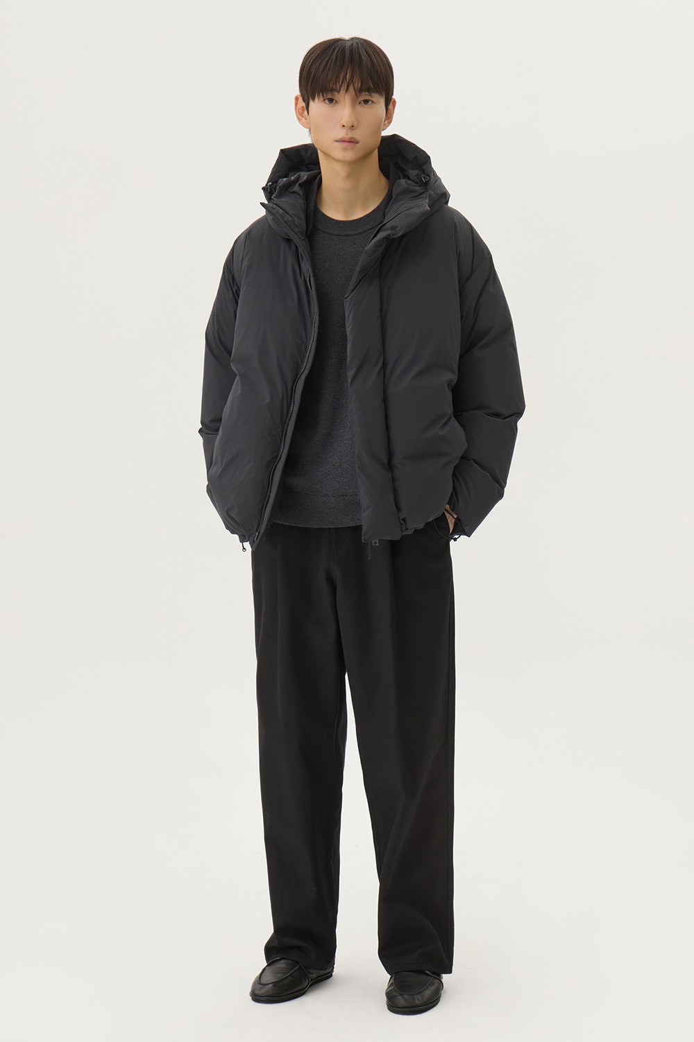 디테일 역시 가장 안정적이면서도 편안함과 실용성을 챙기실 수 있도록 제작했습니다. 유럽의 대표적인 구스 생산지인 헝가리의 구스다운을 등판에 사용했습니다. 여밈 부는 따스한 기운을 최대한 가둬둘 수 있도록 지퍼와 마그네틱 버튼 클로징의 이중 여밈 구조로 제작했습니다. YKK 社의 2WAY 지퍼를 사용하여 핏과 실루엣을 조절할 수 있도록 제작했습니다. 지퍼 클로징 위에는 장갑을 낀 채로 원터치 활용이 가능한 마그네틱 버튼을 플라켓에 히든 형태로 더하여, 외관으로는 가장 정제되고 말끔하면서도 편리하게 활용하실 수 있습니다. 소맷단 역시 이중 소매 구조로 제작했으며, 소매에는 일반적인 RIB이 아니라 플리스 원단을 사용하여 따스한 촉감과 보온성을 배가시켰습니다. 사이드포켓은 옆선을 타고 내려오는 봉제라인에 더하여 말끔하고 미니멀한 느낌을 극대화했습니다. 사이드 히든 포켓을 포함하여 내부와 외부에 총 6개의 포켓으로 디자인적 요소는 물론 수납의 효율성을 더하였습니다.