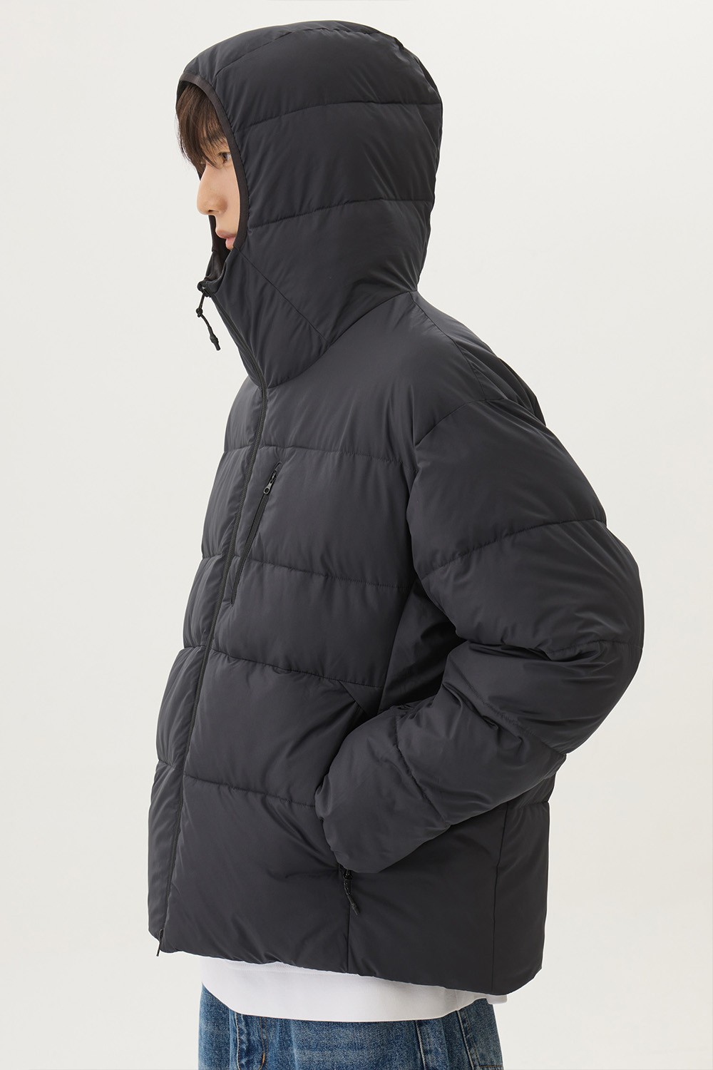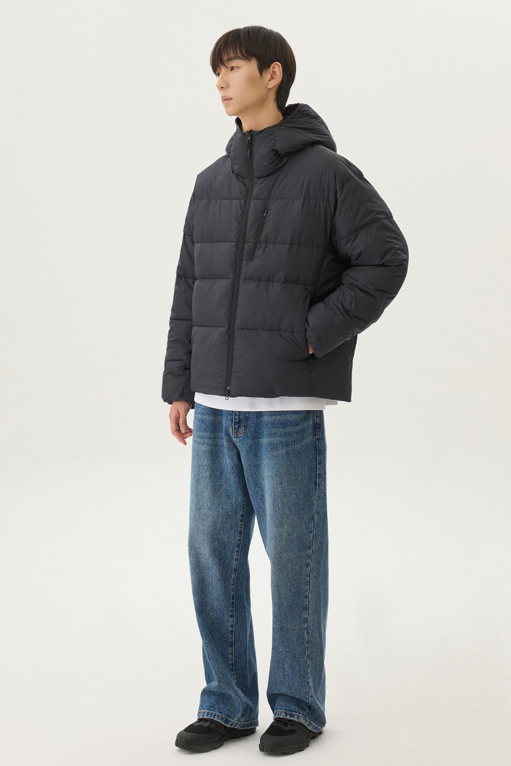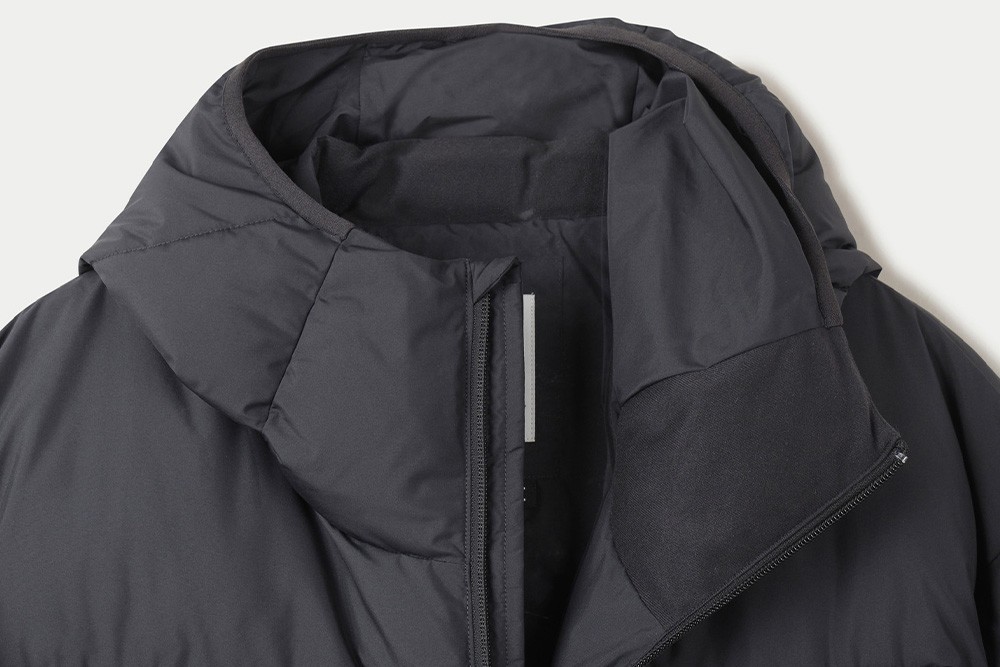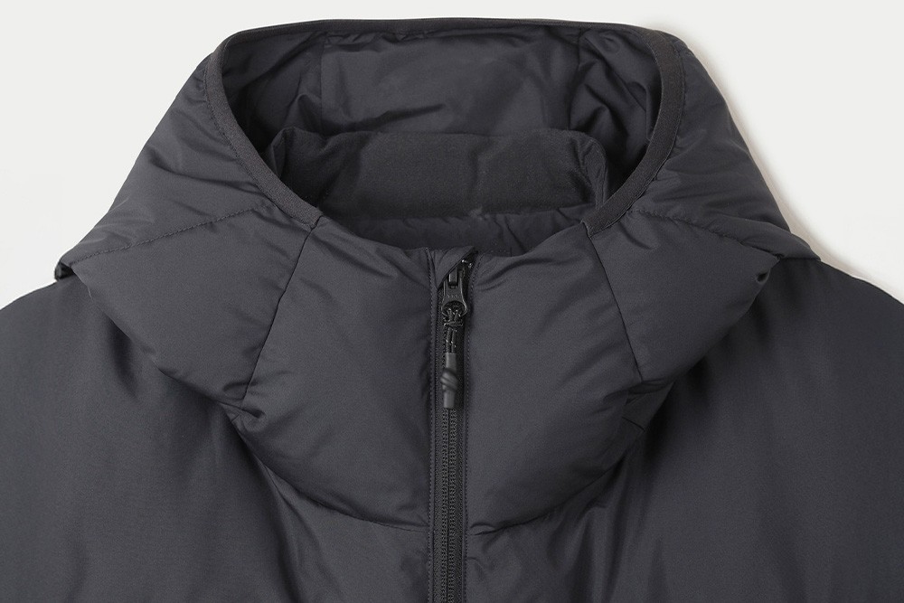 다운백 구조로 충전재가 고르게 분포되도록 설계하였으며, 후드와 넥라인 전체에는 기모 트리코트 안감을 사용해 민감한 부위의 착용감을 부드럽게 마감했습니다. 측면은 암홀부터 밑단까지 이어지는 일체형 사이드 패널 구조로 설계하여 봉제선에서 발생할 수 있는 불편함을 줄이고, 바람이 스며드는 것을 최소화했습니다.