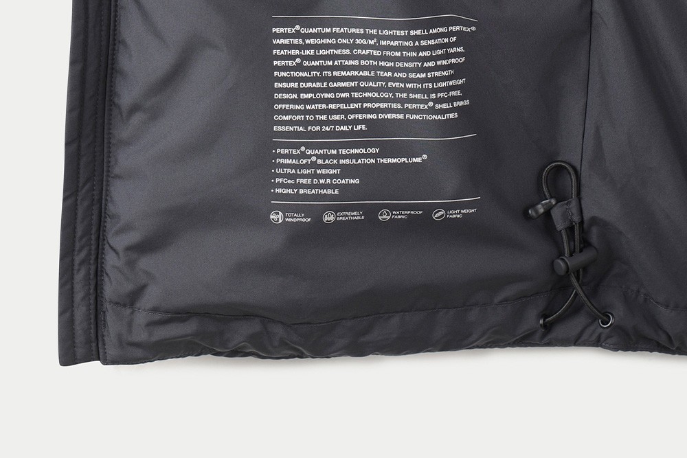 겉감과 안감 모두 초경량 고밀도 소재인 PERTEX® QUANTUM을 사용하여 가벼우면서도 방풍성과 내구성이 우수합니다.