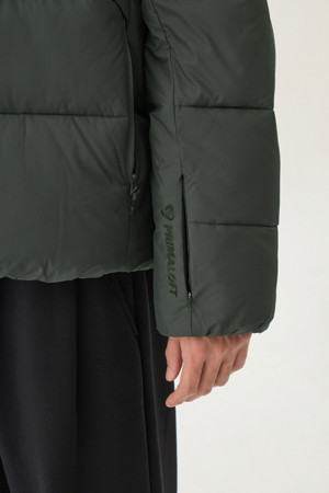 충전재는 PRIMALOFT® BLACK ThermoPlume을 사용했습니다. PrimaLoft ® Black ThermoPlume은 구조상 550필 파워 다운과 동등한 열적 성능을 제공하면서도, 방수 성능을 겸비하여 한겨울 눈, 비 등 외부 환경에서도 안정적인 보온력을 제공합니다.