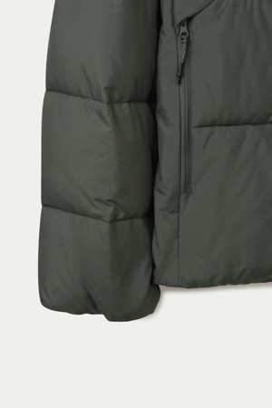 A : 충전재는 PRIMALOFT® BLACK ThermoPlume을 사용했습니다. PrimaLoft ® Black ThermoPlume은 구조상 550필 파워 다운과 동등한 열적 성능을 제공하면서도, 방수 성능을 겸비하여 한겨울 눈, 비 등 외부 환경에서도 안정적인 보온력을 제공합니다.