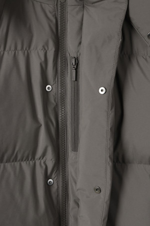 YKK社 2WAY 지퍼 위로 플라켓을 더해 이중 여밈 구조로 설계했습니다. 스냅 버튼을 더해 착용 시 안정감과 보온성을 동시에 확보하실 수 있으며, 바람이 강한 날씨에도 내부 온기를 지킬 수 있도록 구성했습니다.
