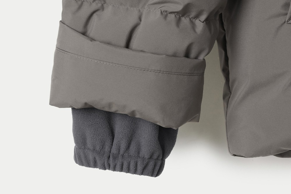 소매 안쪽에는 플리스 소재의 리브를 추가하여 손목을 감싸는 구조로 마감했습니다. 이중 소매 구조는 찬 바람의 유입을 막고, 보온성을 유지하는 데에 효과적인 역할을 합니다. 소매 끝단에는 마이크로 브러시 플리스를 배치하여 착용 시 부드러운 마감감을 느끼실 수 있습니다.