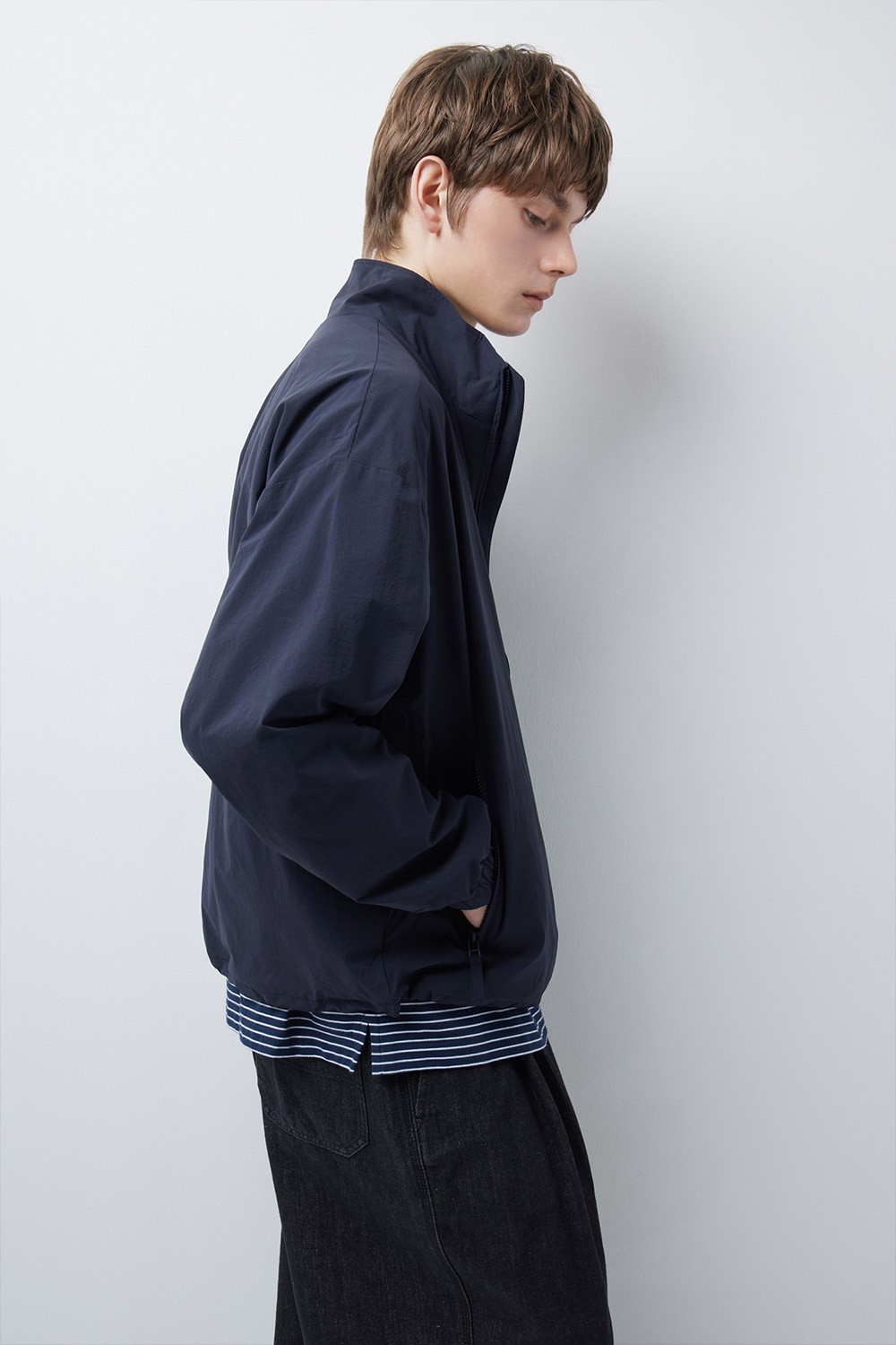 정제된 블루종 실루엣에 히든 체스트 포켓과 하이넥 디자인을 더해 범용성을 높였습니다. 셋업 연출은 물론 셔츠와 매치한 비즈니스 캐주얼 무드까지 폭폭하게 활용 가능하며, 밑단 스트링을 통해 개인의 취향에 맞는 다양한 아웃핏을 구현할 수 있습니다.