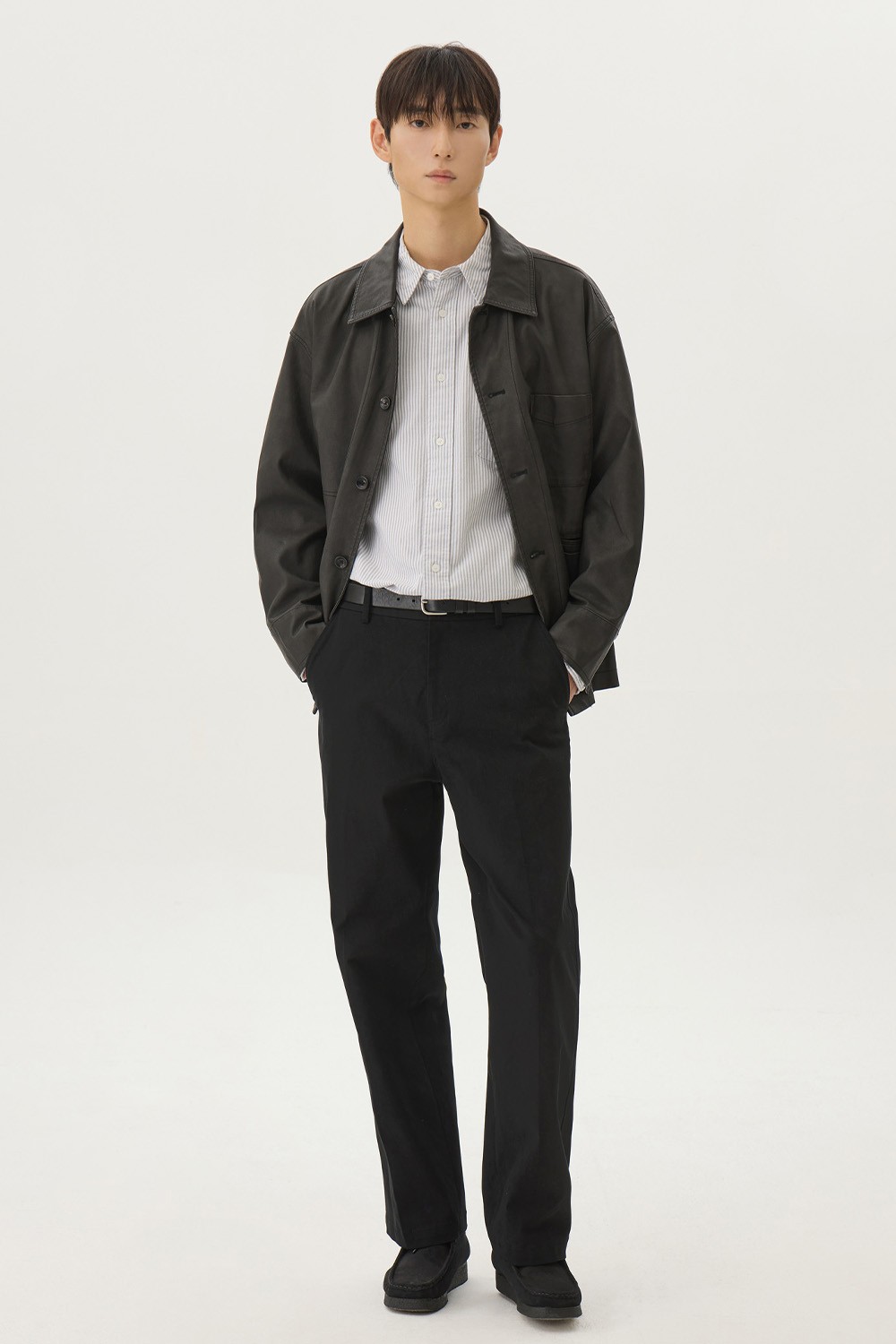 코팅 가공과 직조 공정을 거쳐 제작한 신세틱 레더 소재를 사용했습니다. 카우하이드 특유의 강인한 내구성과 고유의 텍스처를 재현하고자 했습니다. 특히나 습기와 구김에 약한 동물성 가죽의 단점을 보완하여, 사용과 관리에 편안함을 느끼실 수 있습니다. 가먼트 워싱 단계를 거쳐 오랜 시간 함께해 온 것처럼 관리 상의 편안함을 느끼실 수 있습니다. 외투를 걸쳤다 벗었다 하기 좋은 계절인 만큼, 착 탈의에 불편함을 느끼시지 않도록 부드러운 촉감의 트윌 안감을 사용했습니다.