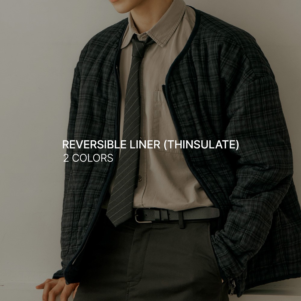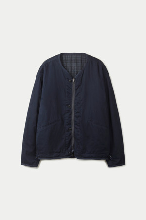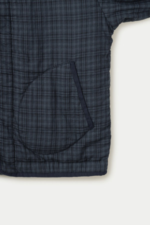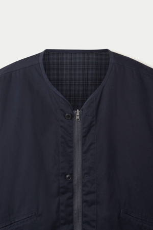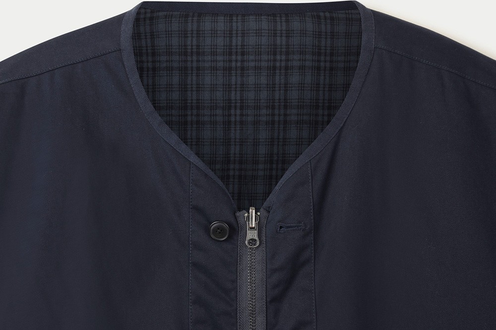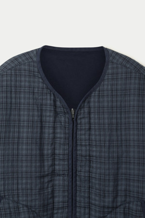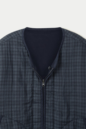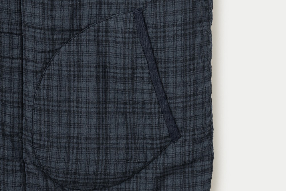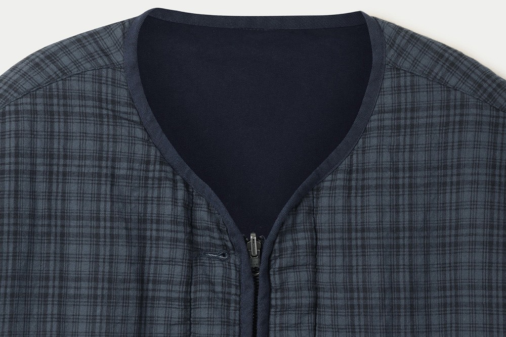 한쪽은 폭닥한 감도의 코튼 체크, 다른 한쪽은 매끈하게 정돈된 몰스킨 텍스처. 3M 신슐레이트 충전재를 사용해 경량성과 보온성을 모두 확보했으며, 양면 각기 다른 포켓 구조와 YKK 리버서블 지퍼를 통해 기능성과 활용도까지 고려해 설계했습니다.