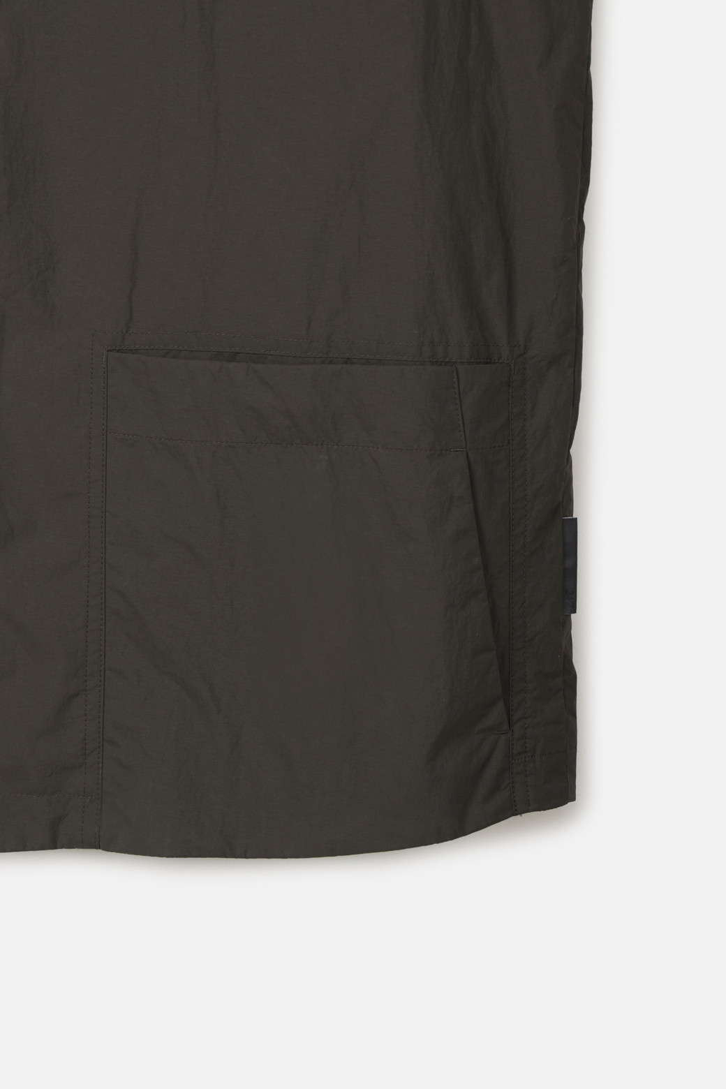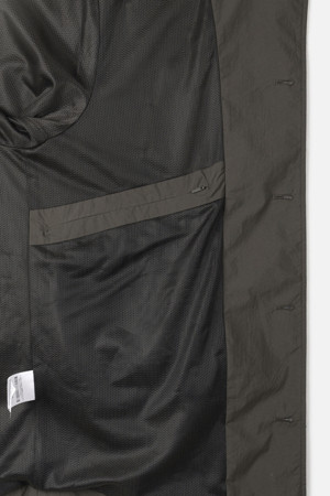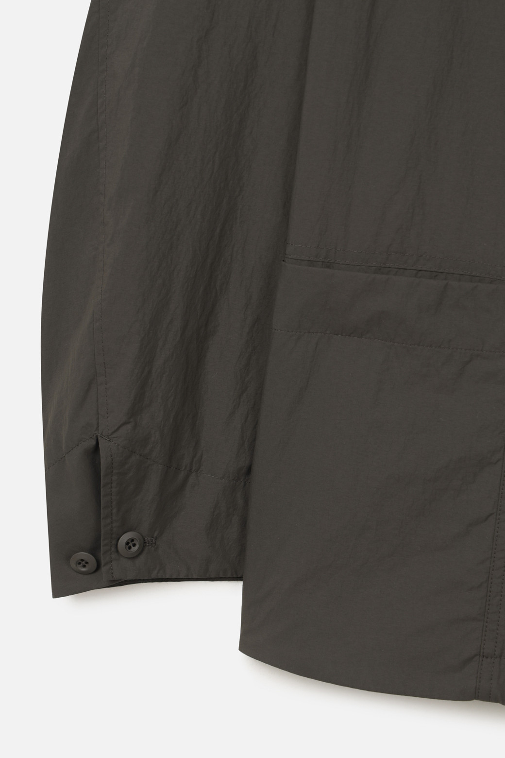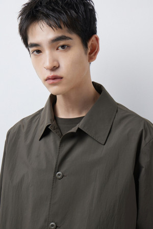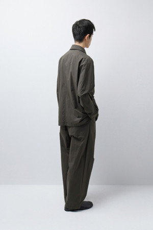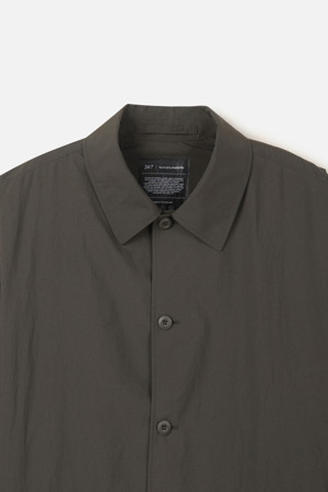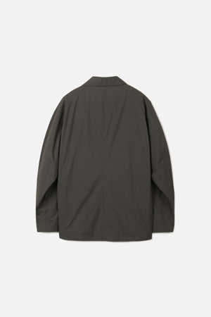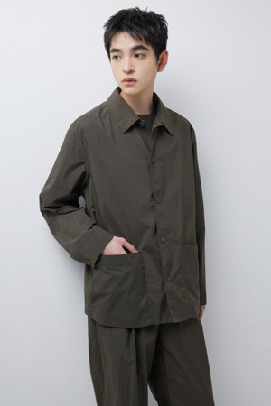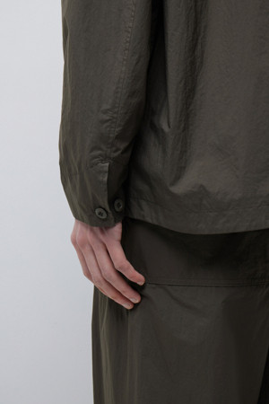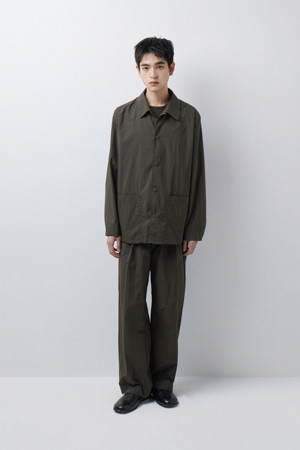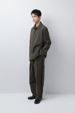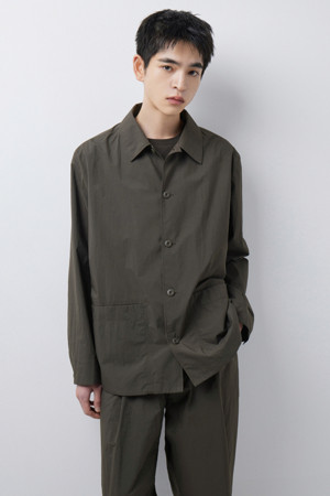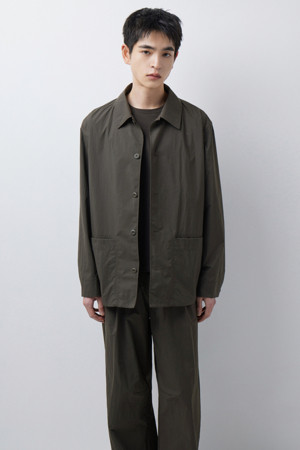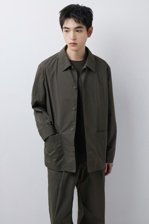 전체 실루엣은 셔츠형 아우터를 기반으로 편안한 실루엣으로 구성되었으며, 앞여밈은 단추 방식으로 마감되어 자켓과 셔츠의 중간 지점을 유지합니다. 소매는 버튼 여밈 방식으로 조절 가능해, 롤업하거나 실루엣을 조절할 때 유용하게 활용할 수 있습니다. 뒷넥에는 행거 루프가 내장되어 실내 보관 시에도 편의성을 더했습니다.