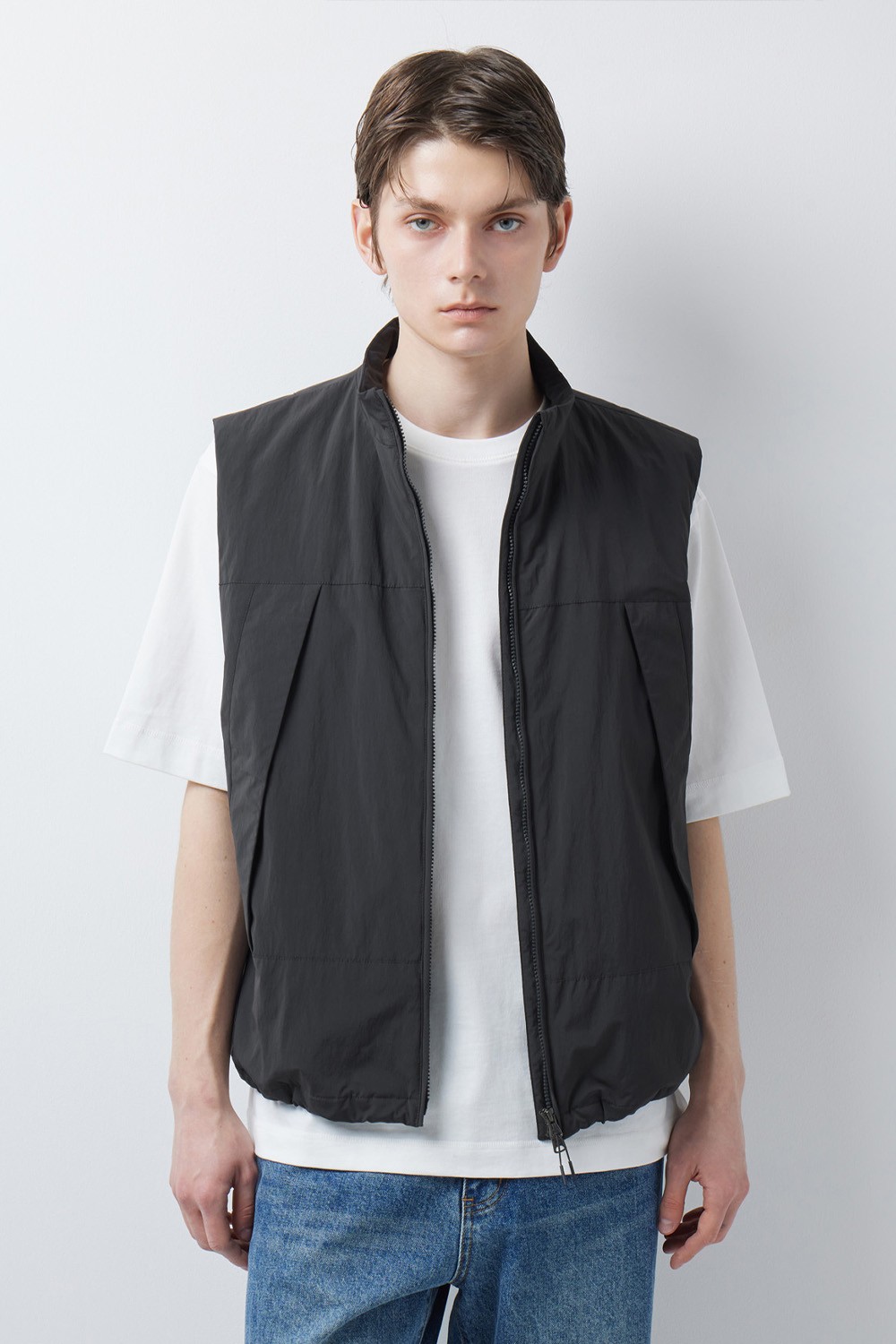 A : 간절기에는 셔츠나 반소매 위에 가볍게 걸치고, 추운 날씨에는 헤비 아우터 안에 이너 베스트로 레이어링해 보세요. 하이넥 디자인으로 제작되어 터틀넥이나 셔츠와 매치했을 때 더욱 감각적인 실루엣이 연출됩니다.
