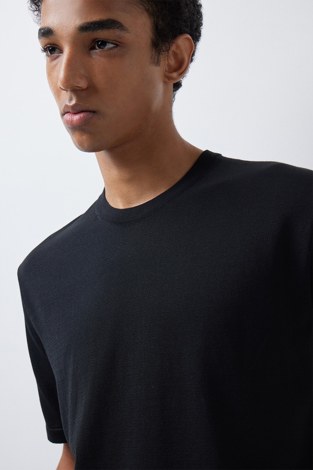 에센셜한 착장에 어울리는 담백한 컬러 구성과 적당한 레귤러 핏 실루엣으로 제작되었습니다. 단정한 라운드넥 디자인은 다양한 하의와 조화롭게 어우러지며, 간결하고 정돈된 아웃핏을 연출하기에 최적화된 아이템입니다.