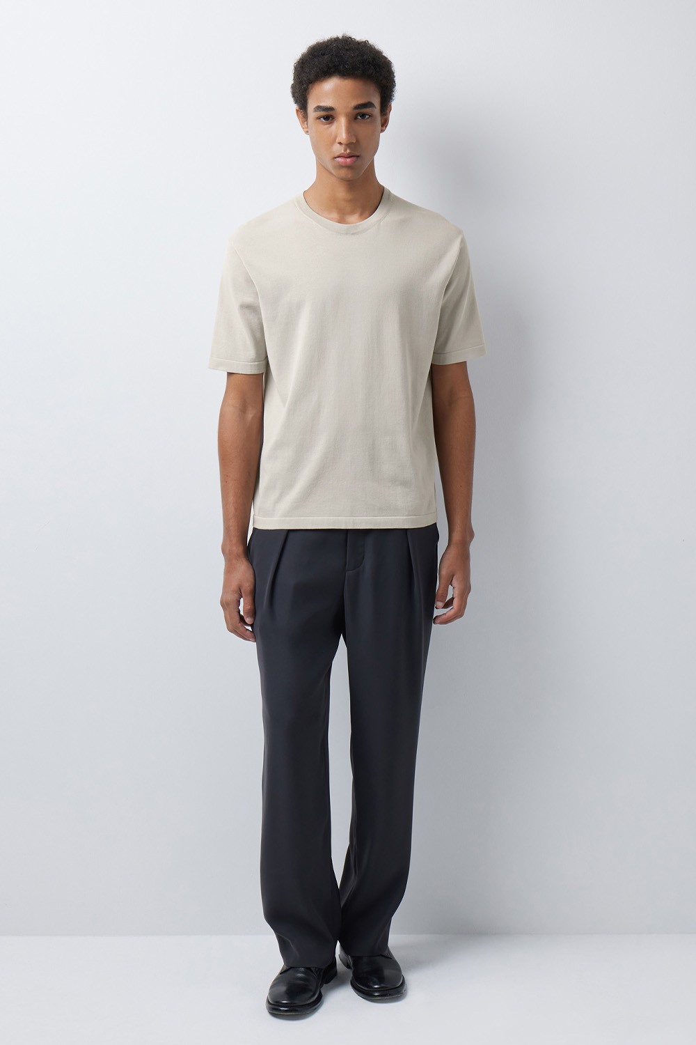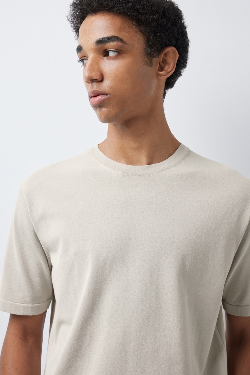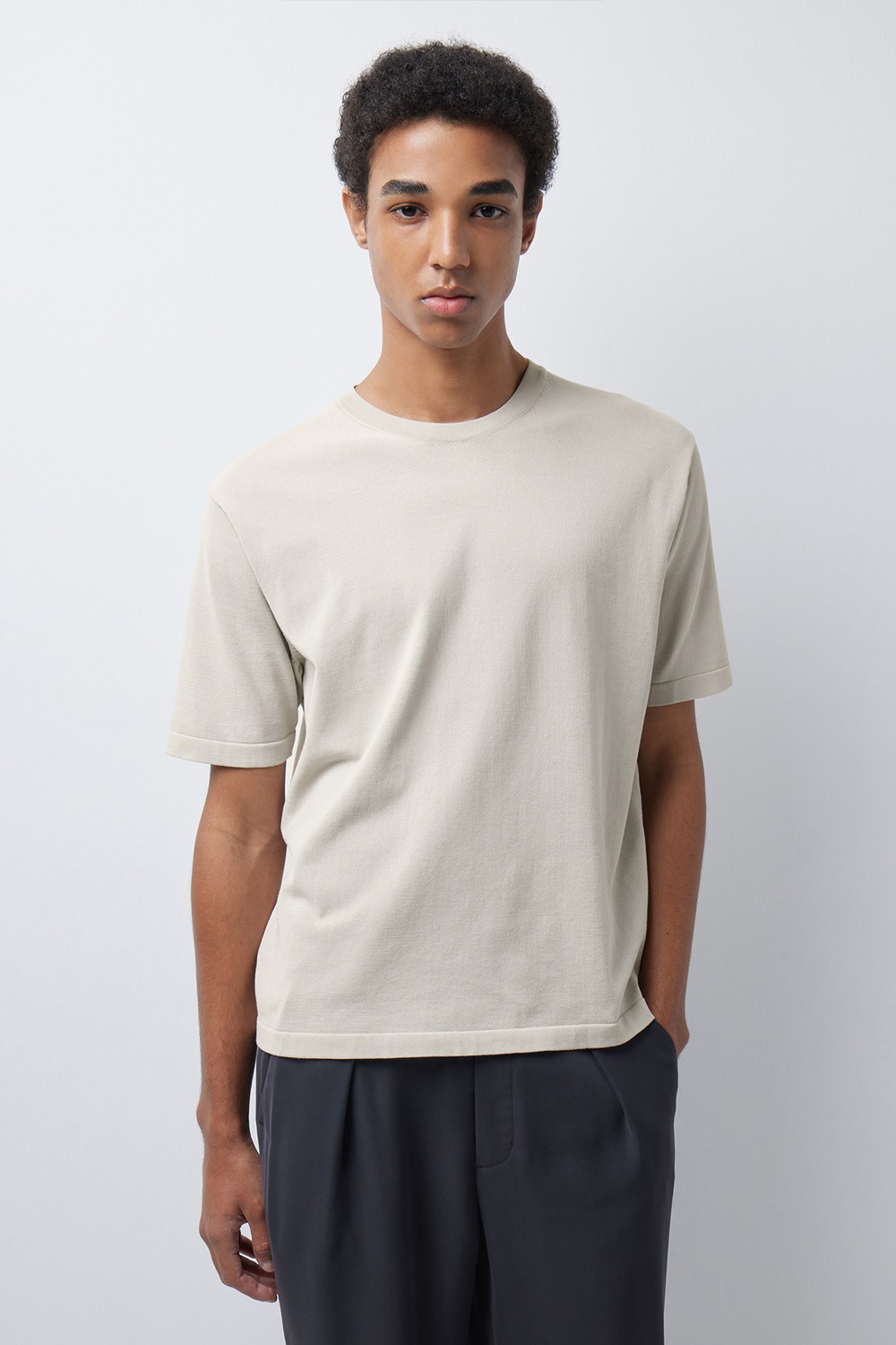 에센셜한 착장에 어울리는 담백한 컬러 구성과 적당한 레귤러 핏 실루엣으로 제작되었습니다. 단정한 라운드넥 디자인은 다양한 하의와 조화롭게 어우러지며, 간결하고 정돈된 아웃핏을 연출하기에 최적화된 아이템입니다.