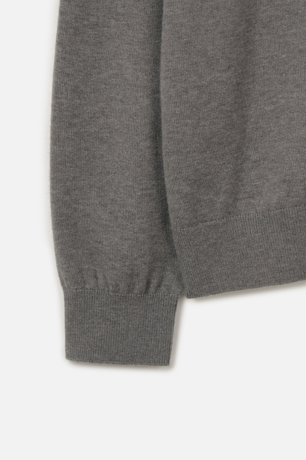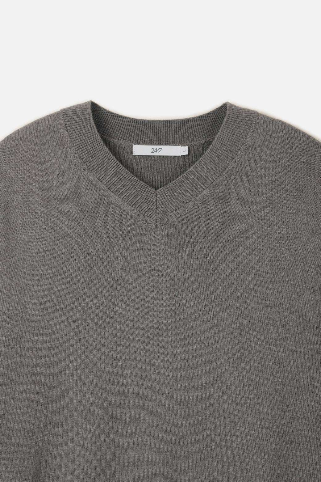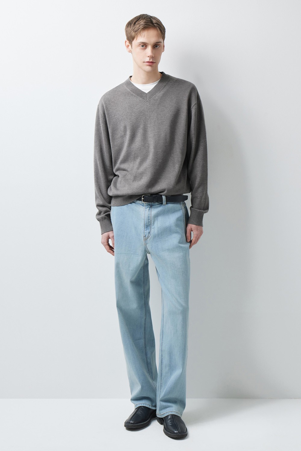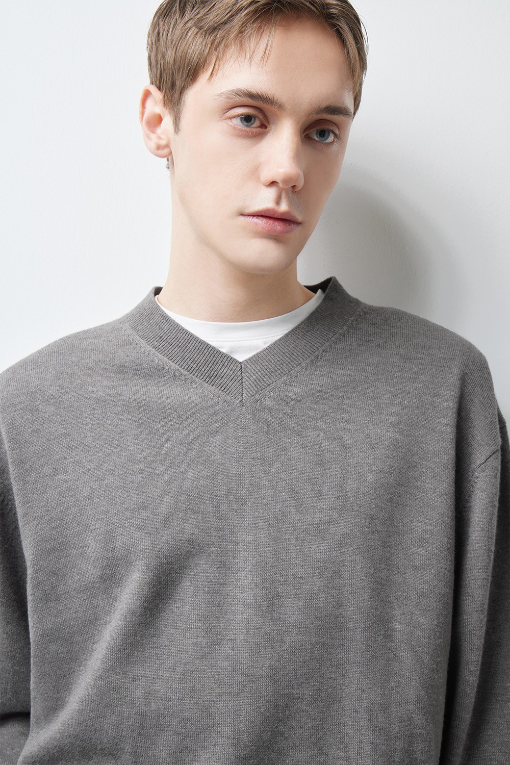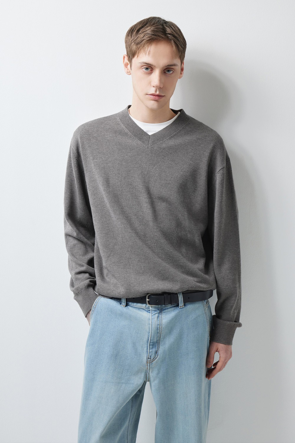 울 혼방 소재를 12게이지로 짜내 가볍고 부드러운 착용감을 제공하는 V넥 니트입니다.
