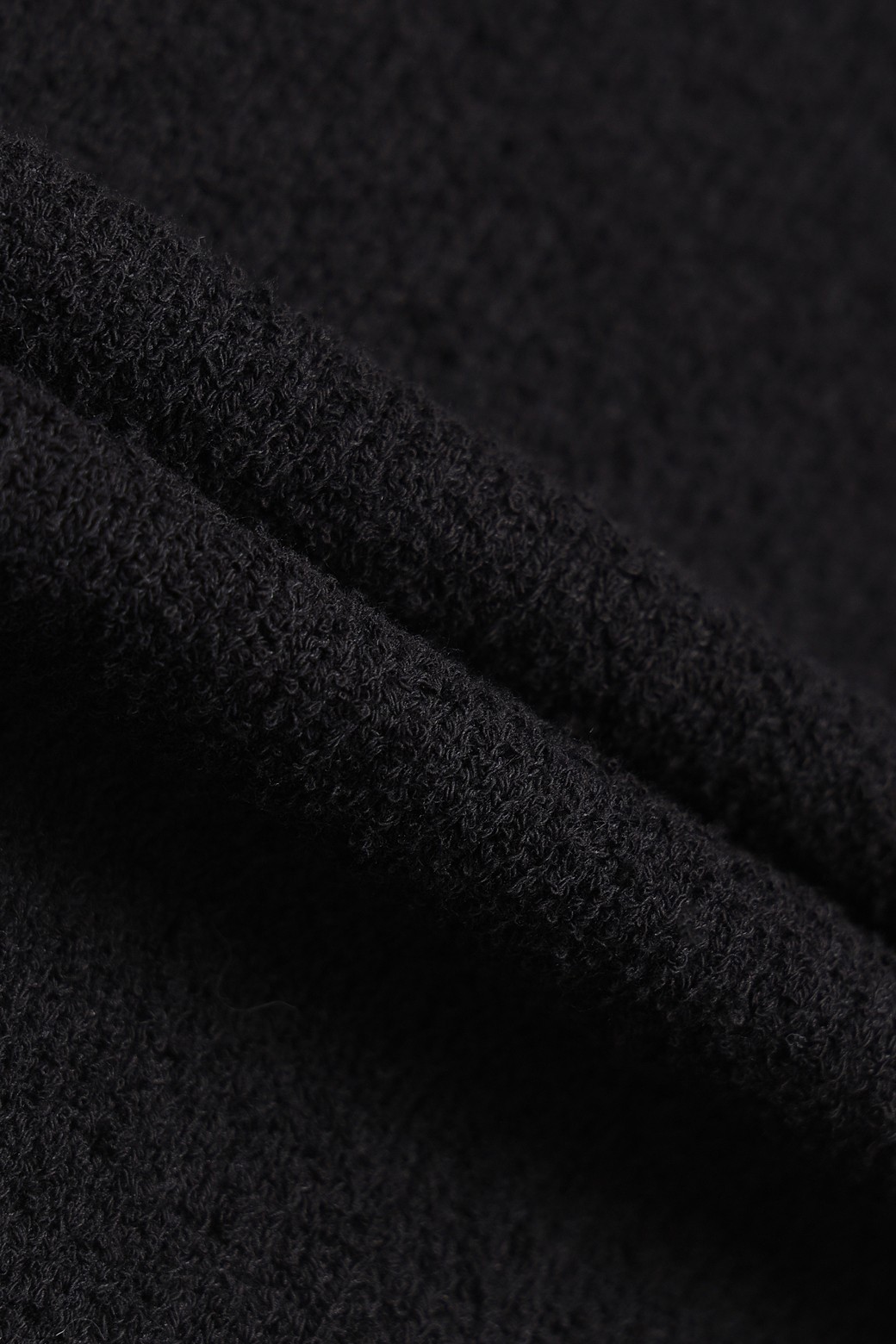 A : 실 표면에 작은 고리들이 얽힌 듯한 입체적인 텍스처가 특징입니다. 일반적인 평면 조직보다 훨씬 풍부한 볼륨감과 독특한 표면감을 선사하며, 단조로운 코디에도 소재 자체만으로 확실한 스타일 포인트를 더해줍니다