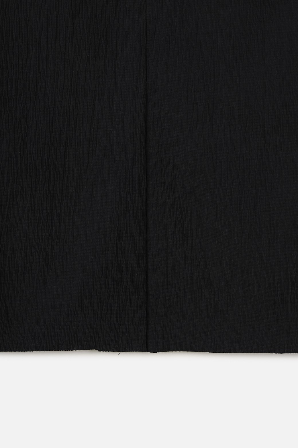 크리즈 가공을 통해 원단에 자연스러운 주름과 고급스러운 드레이프성을 더한 소재를 사용했습니다. 단일 원사를 분리한 모노 필라멘트사를 열가공하여 형태 안정성이 느껴지는 크리즈 조직을 구현했으며, 복잡한 생산 공정을 거쳐 독특한 질감과 입체감을 완성했습니다. 우수한 스트레치성과 함께 가볍고 쾌적한 착용감을 제공하며, 구김에 강하고 관리가 쉬워 일상 속에서도 편안하게 활용하실 수 있습니다.