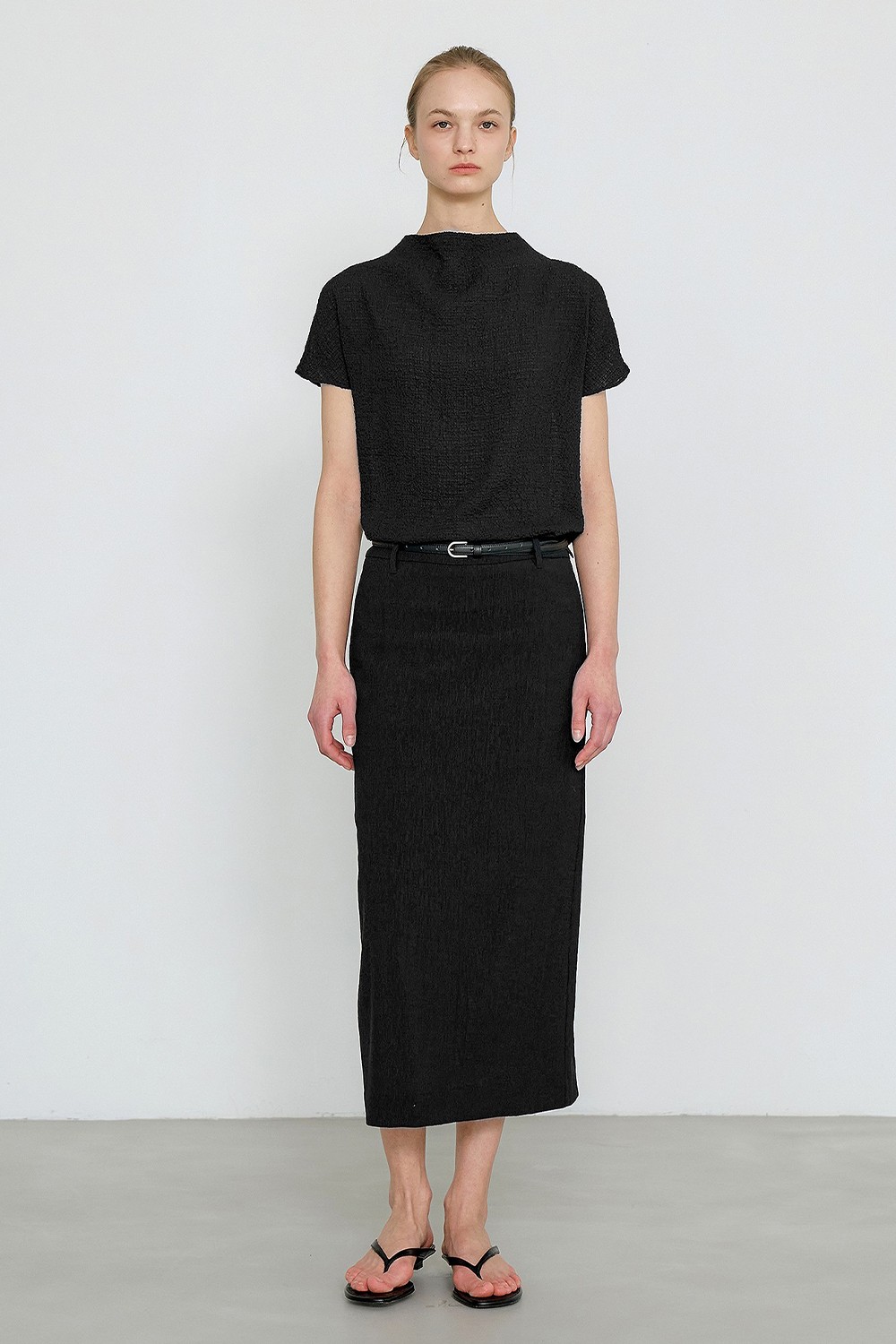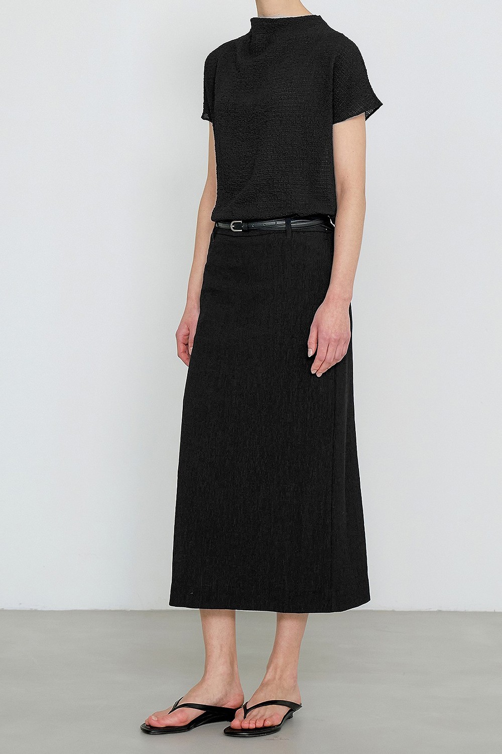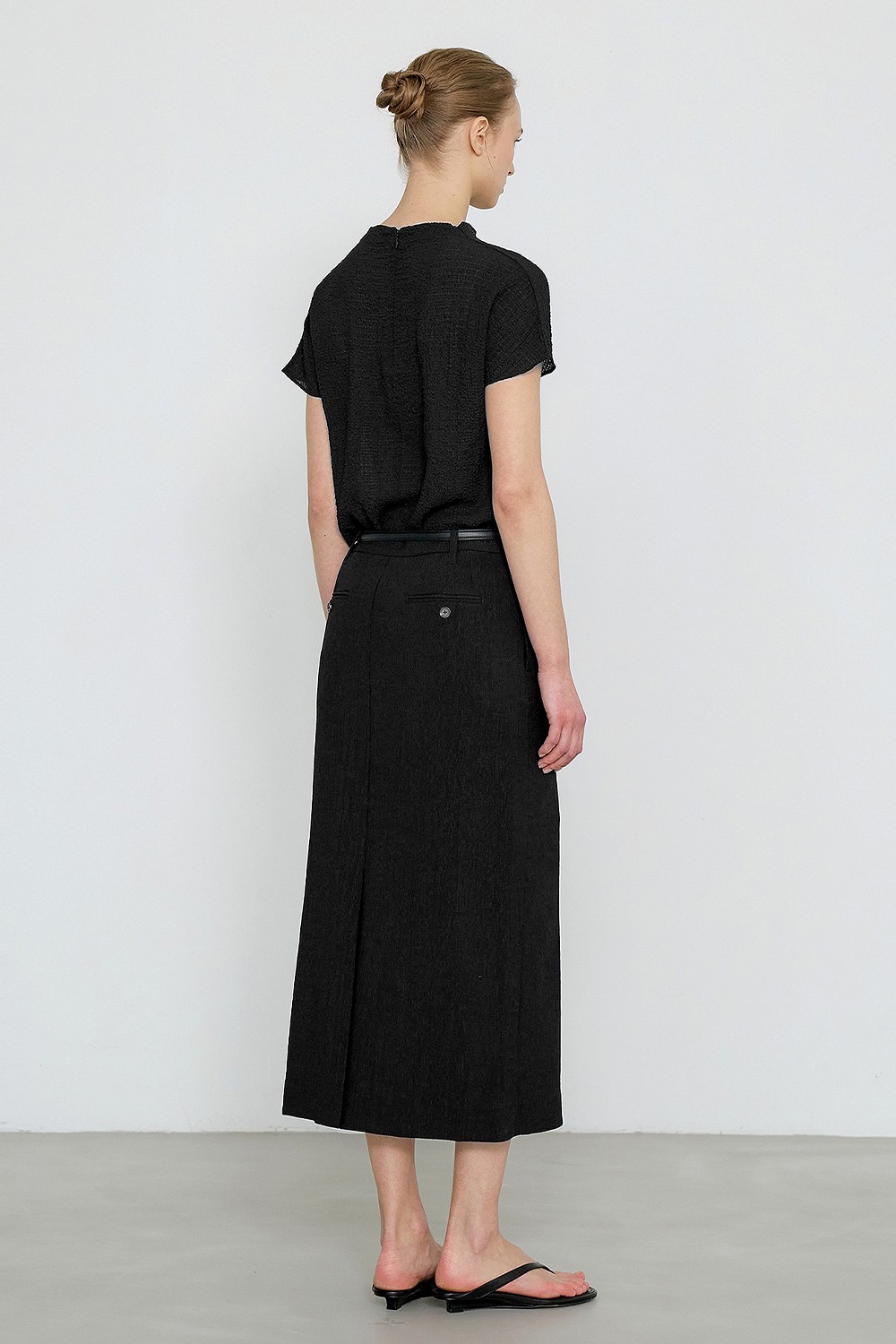 전체적으로 날씬하고 단아한 펜슬 스커트 실루엣을 기반으로 에센셜한 맥시 스커트를 설계했습니다. 봉제선에 맞춰 사이드 포켓을 구성해 미니멀한 구조를 유지했으며, 벨트 고리 디테일을 더해 벨트와 함께 착용 시 자연스럽게 완성도 있는 스타일을 연출하도록 했습니다.