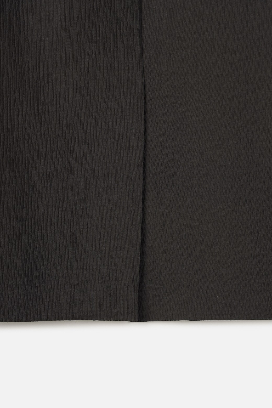 크리즈 가공을 통해 원단에 자연스러운 주름과 고급스러운 드레이프성을 더한 소재를 사용했습니다. 단일 원사를 분리한 모노 필라멘트사를 열가공하여 형태 안정성이 느껴지는 크리즈 조직을 구현했으며, 복잡한 생산 공정을 거쳐 독특한 질감과 입체감을 완성했습니다. 우수한 스트레치성과 함께 가볍고 쾌적한 착용감을 제공하며, 구김에 강하고 관리가 쉬워 일상 속에서도 편안하게 활용하실 수 있습니다.