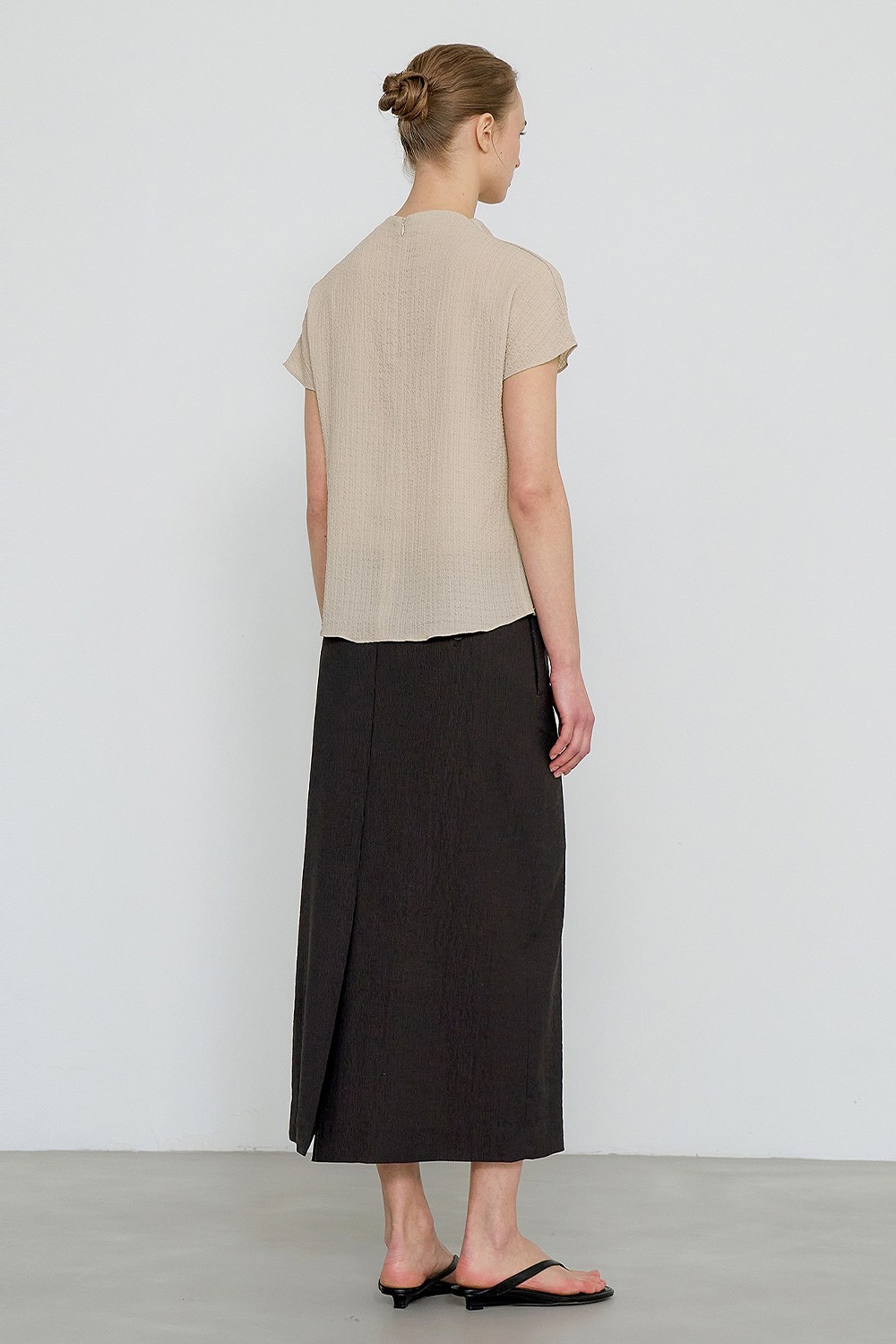 H라인 맥시 실루엣을 기반으로 단정한 인상을 유지하면서도, 움직임에 따라 자연스럽게 대응할 수 있도록 설계한 스커트입니다.