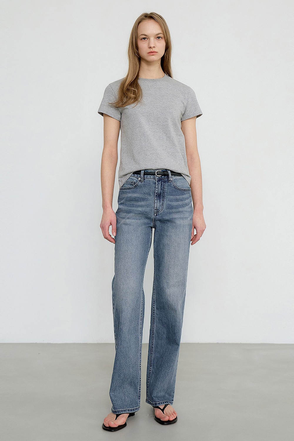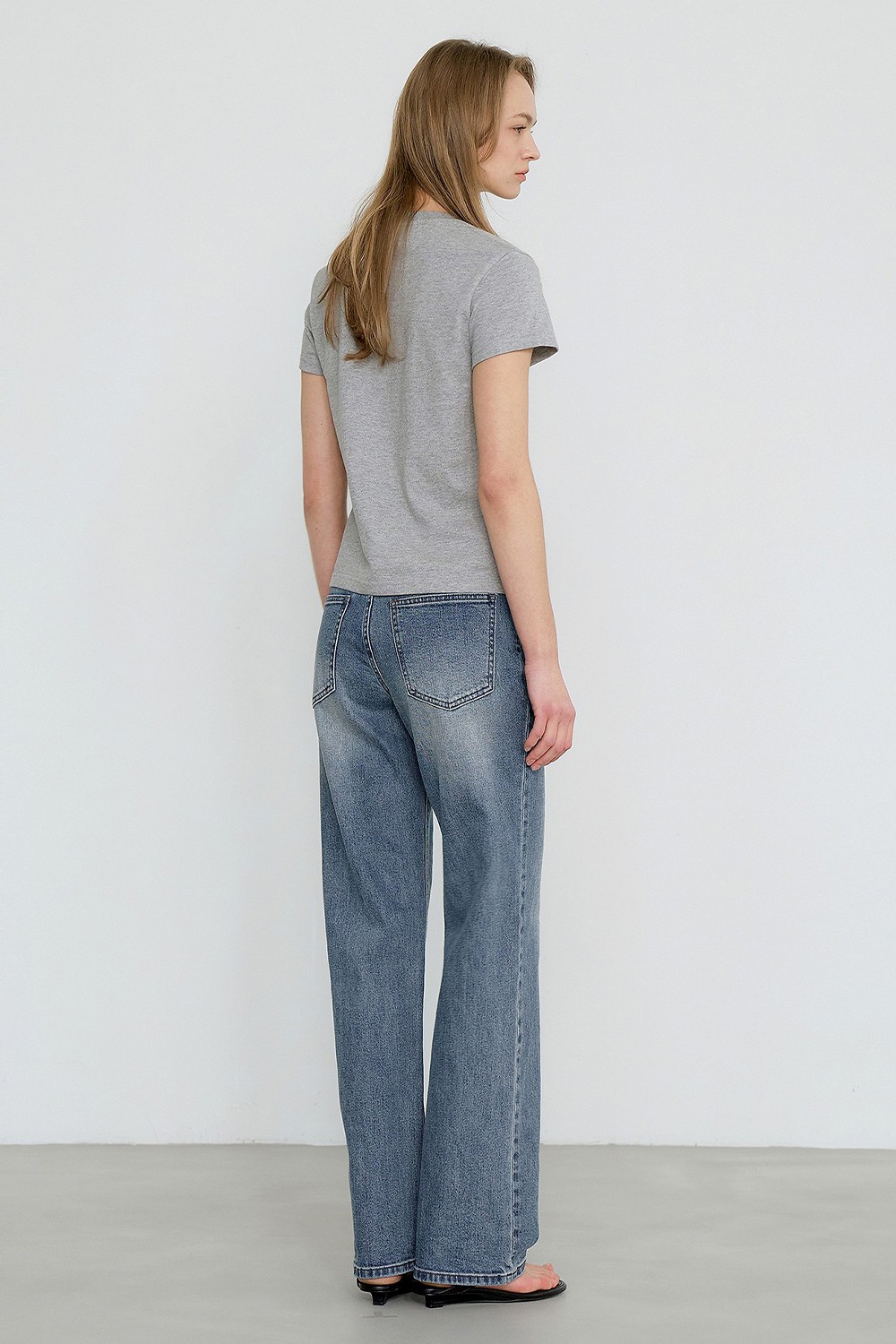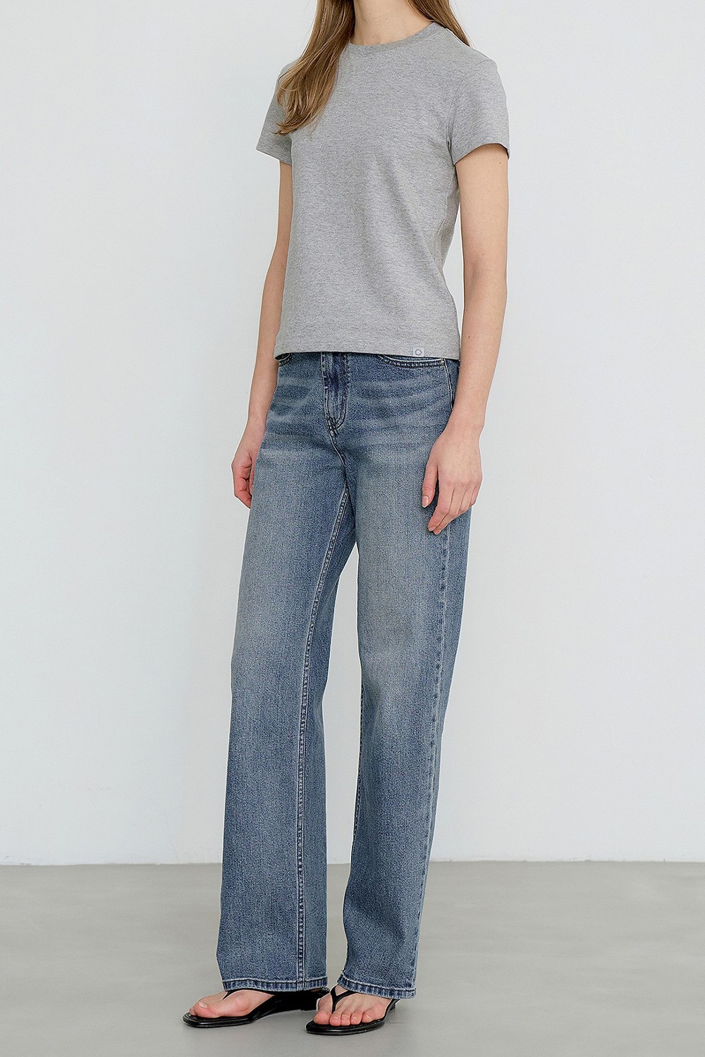 세미와이드 실루엣을 기반으로 전체적인 비율을 정리한 데님입니다.